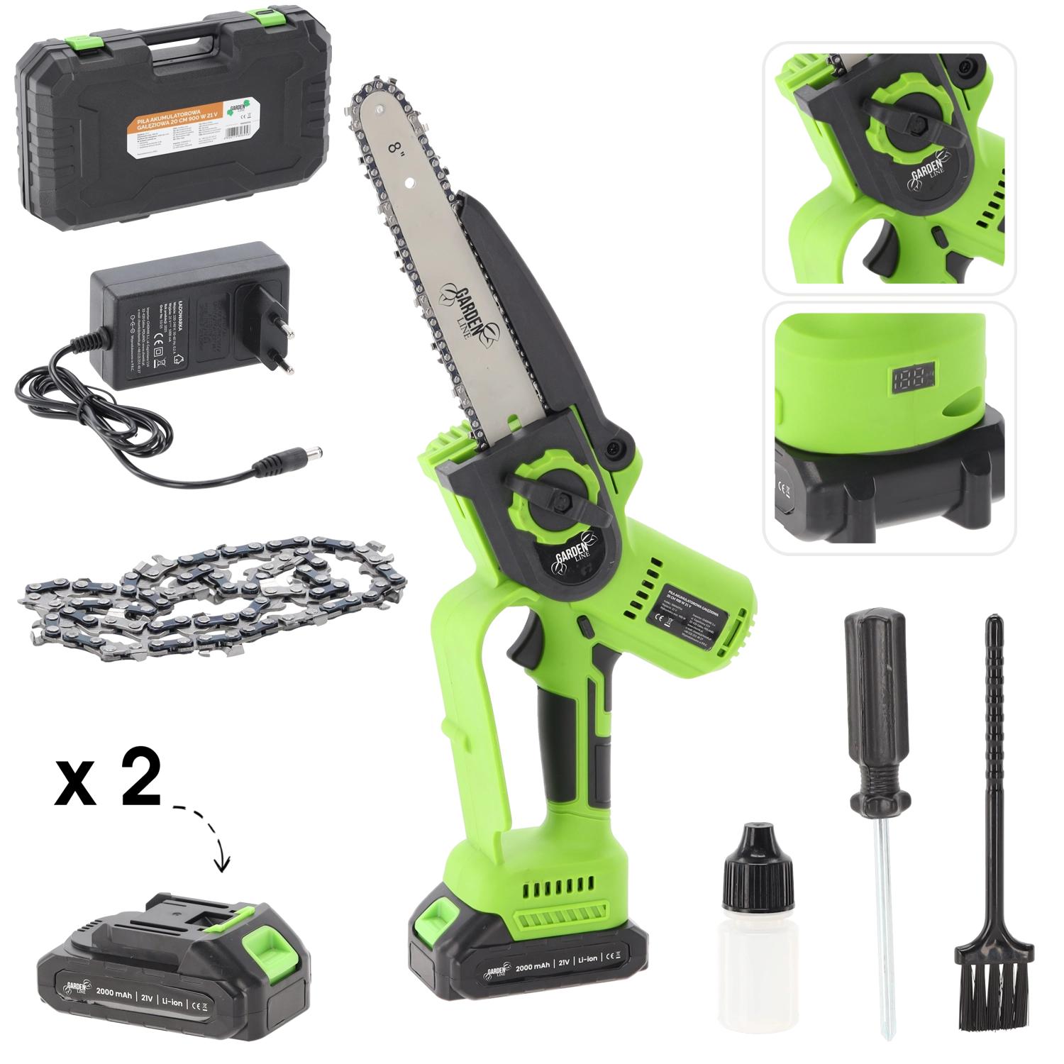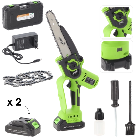 Kompaktowa i wydajna akumulatorowa mini pilarka łańcuchowa do łatwego przycinania gałęzi, krzewów oraz drobnych prac stolarskich. Dzięki silnikowi bezszczotkowemu, prowadnicy 20 cm i prędkości 4500 obr./min zapewnia gładkie i szybkie cięcie bez kabli. W zestawie znajdziesz wszystko, czego potrzebujesz, w tym 2 akumulatory, ładowarkę oraz zapasowy łańcuch do nieprzerwanej pracy w ogrodzie.