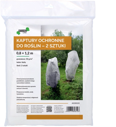 Praktyczne zimowe osłony z białej włókniny o gramaturze 50 g/m² niezawodnie chronią wrażliwe rośliny przed mrozem, wiatrem i utratą wilgoci. Idealne podczas bezśnieżnych zim, są wielokrotnego użytku i pomagają zapobiegać oblepianiu mokrym śniegiem oraz łamaniu gałązek. Opakowanie zawiera 2 szt. o wymiarach 0,8 × 1,2 m w kolorze białym.