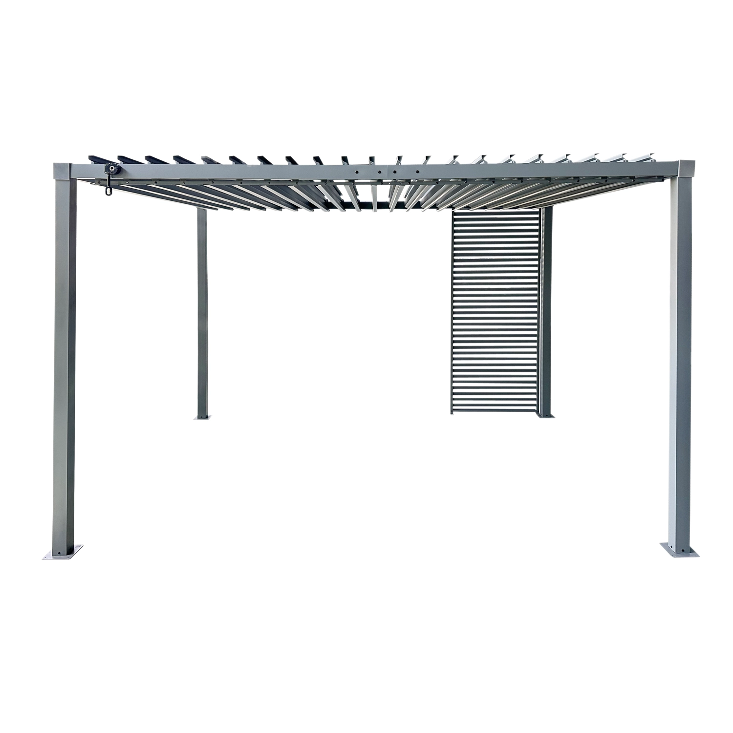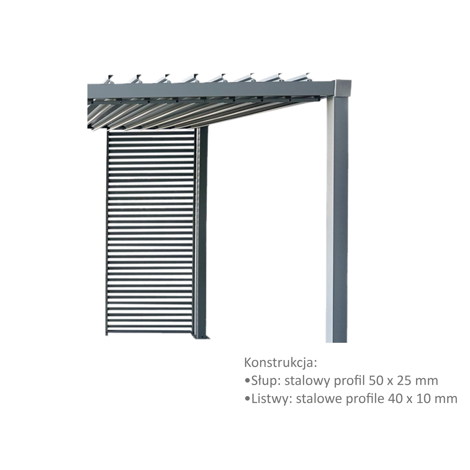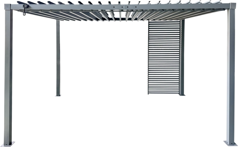 Ulepsz swoją pergolę elegancką metalową żaluzją, która łączy funkcjonalność, trwałość i czysty design. Stalowe profile zapewniają stabilność nawet przy codziennym użytkowaniu, a smukłe lamele nadają przestrzeni nowoczesny charakter oraz przyjemny cień.