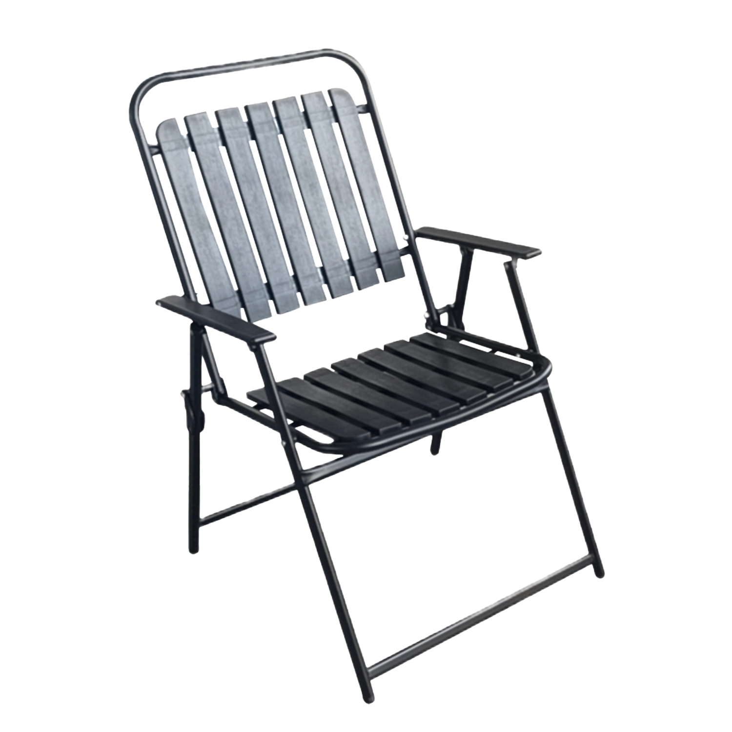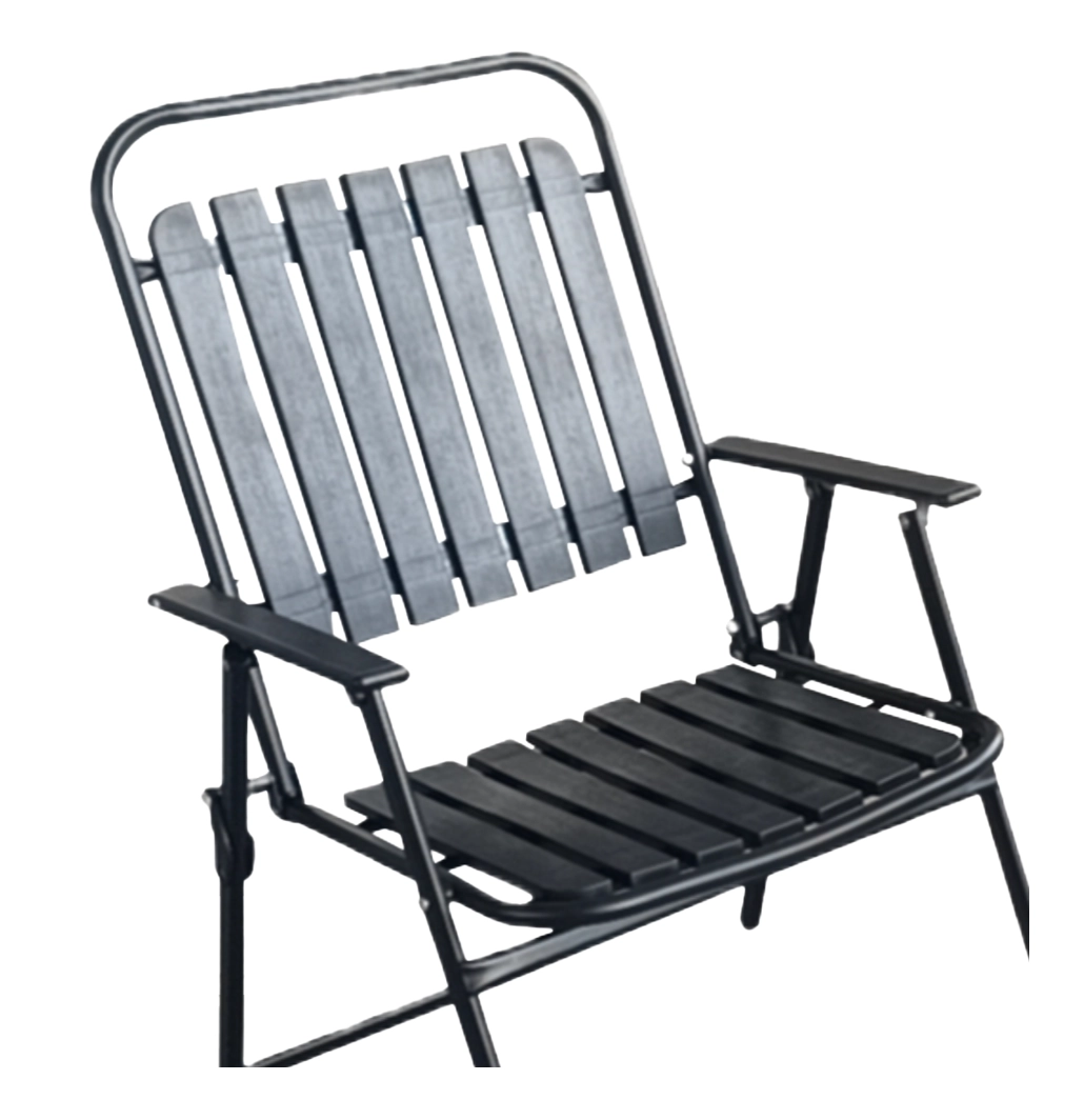 Eleganckie i praktyczne składane krzesło ogrodowe w uniwersalnym czarnym kolorze oferuje wygodne siedzenie, łatwe przechowywanie oraz trwałą metalową konstrukcję. Dzięki oparciu o listwowym wzorze i podłokietnikom idealnie nadaje się na taras, balkon i do ogrodu – gotowe do relaksu w każdej chwili.