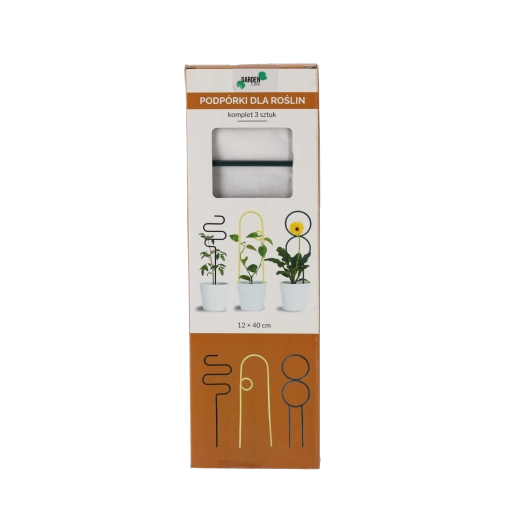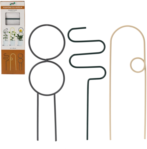 Montaż zajmuje chwilę – wystarczy wsunąć podpórki do doniczki w okolice korzeni i stopniowo mocować do nich pędy. Różne wzory w zestawie umożliwiają dopasowanie podpór do konkretnych potrzeb poszczególnych roślin.