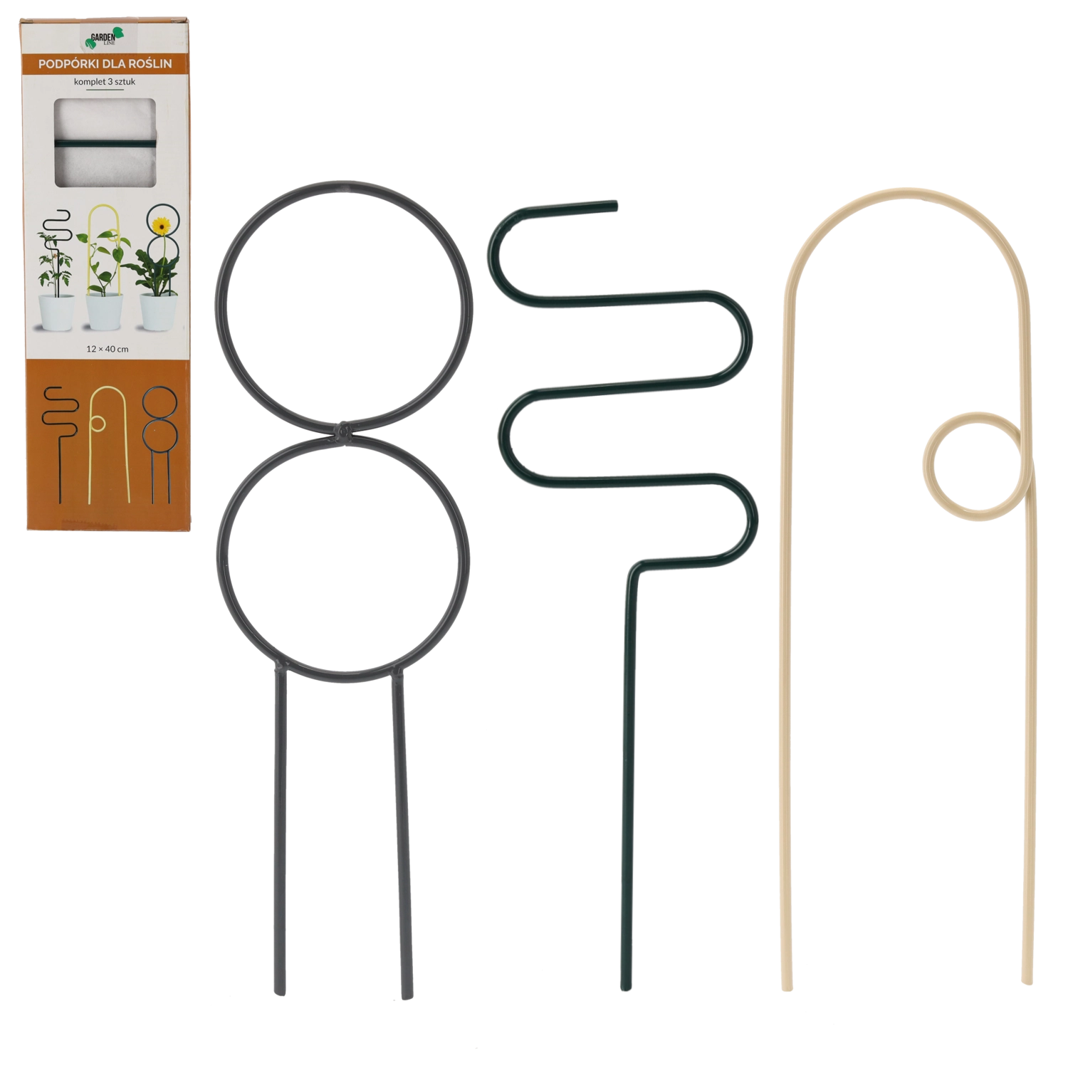Zestaw metalowych podpórek do roślin doniczkowych 12 × 40 cm, zielony, 3 szt.