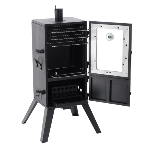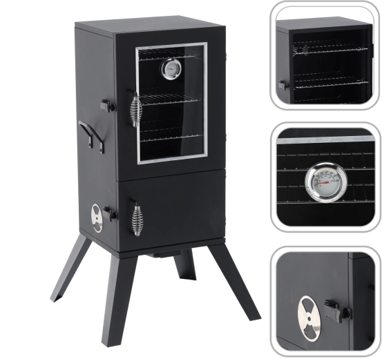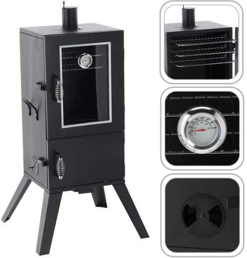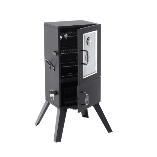Domowe wędzenie nigdy nie było prostsze. Ta ogrodowa wędzarnia łączy solidny korpus metalowy z przemyślanym przepływem powietrza i regulacją temperatury. Szklane okno oraz wbudowany termometr pozwalają na bieżące monitorowanie procesu, a sprężynowe uchwyty gwarantują bezpieczne otwieranie drzwi nawet podczas pracy.