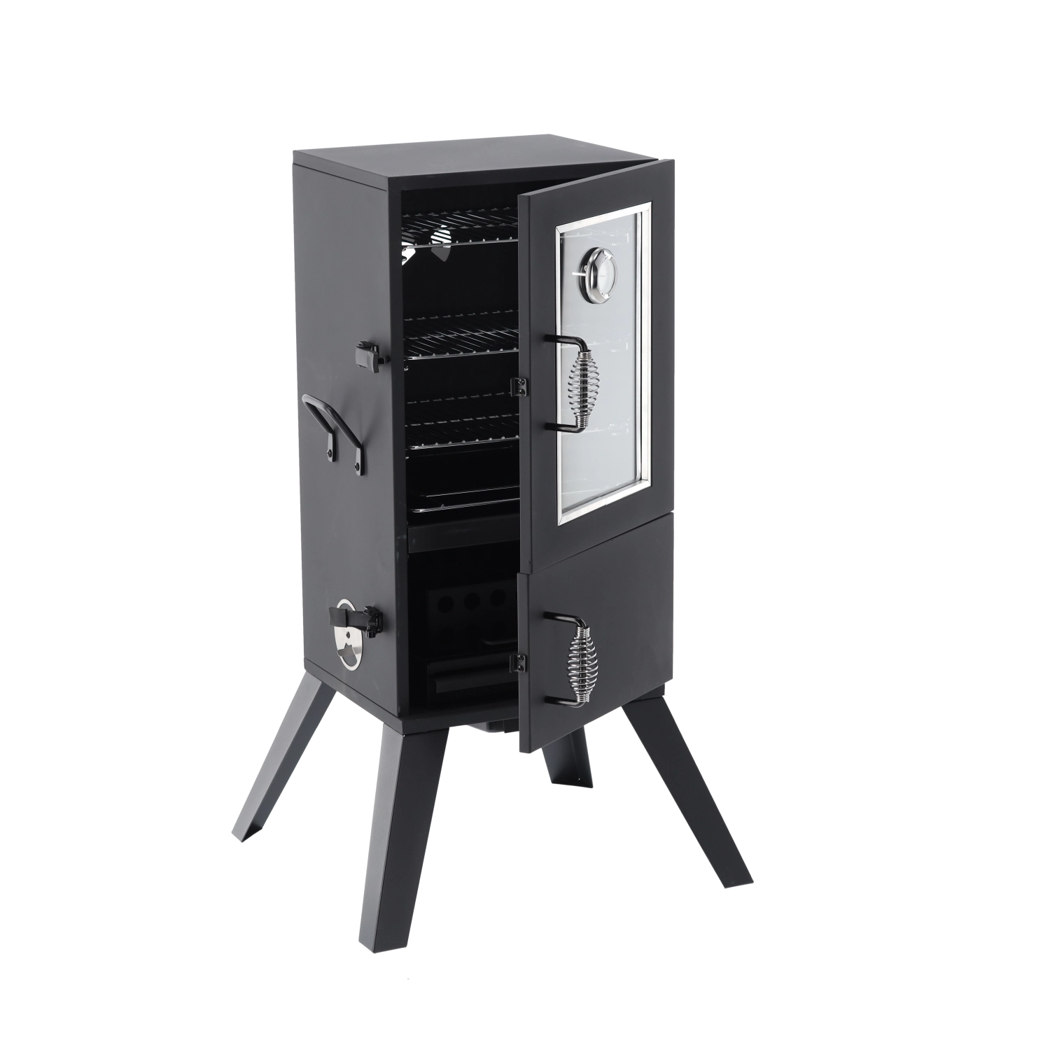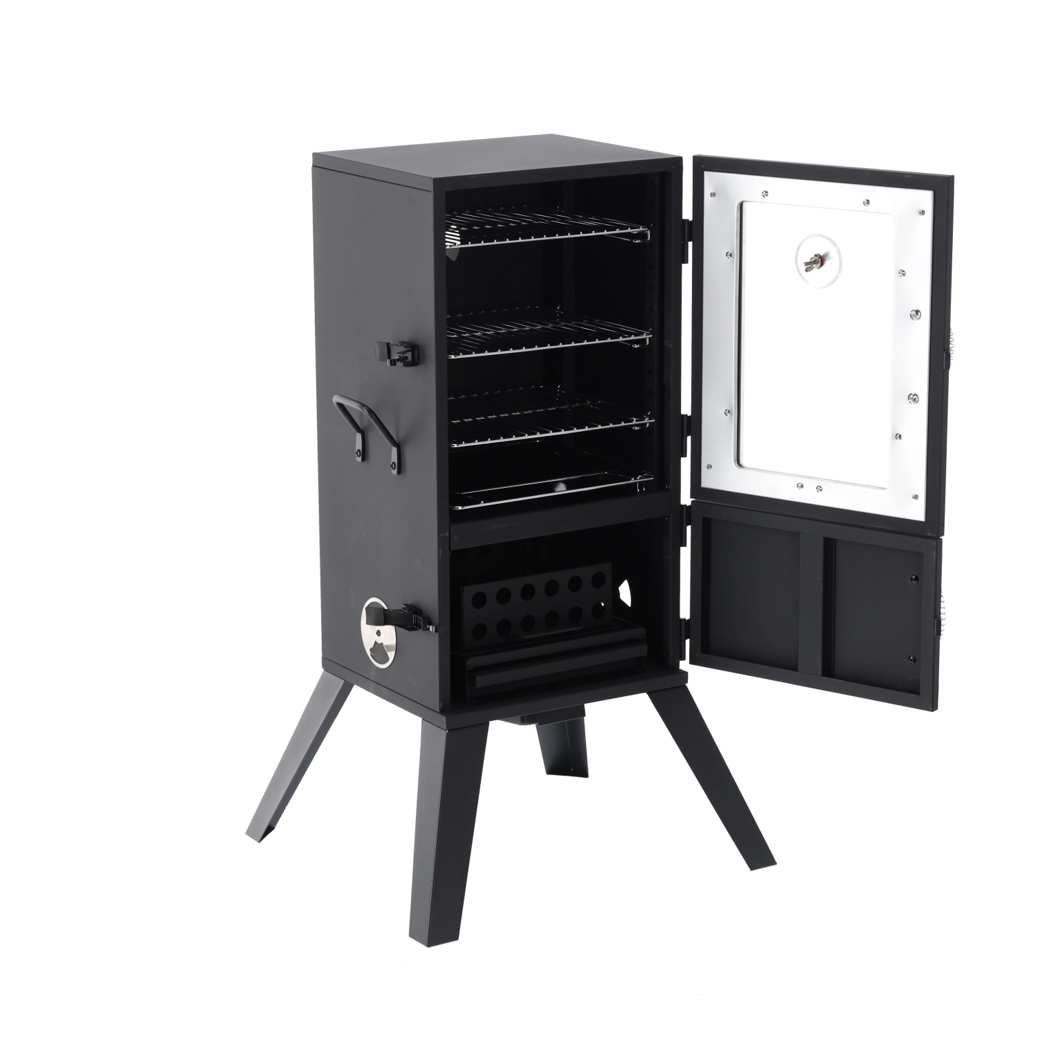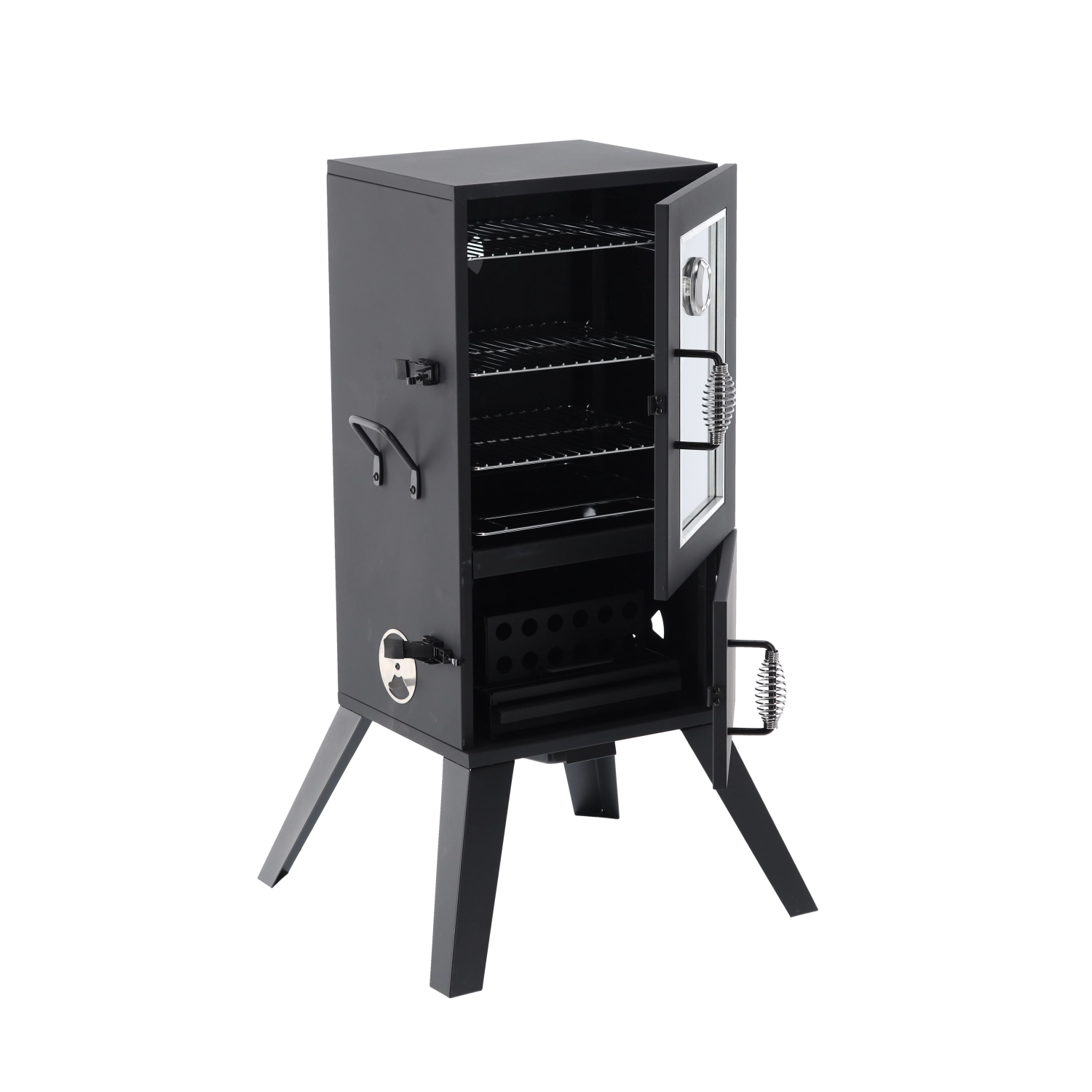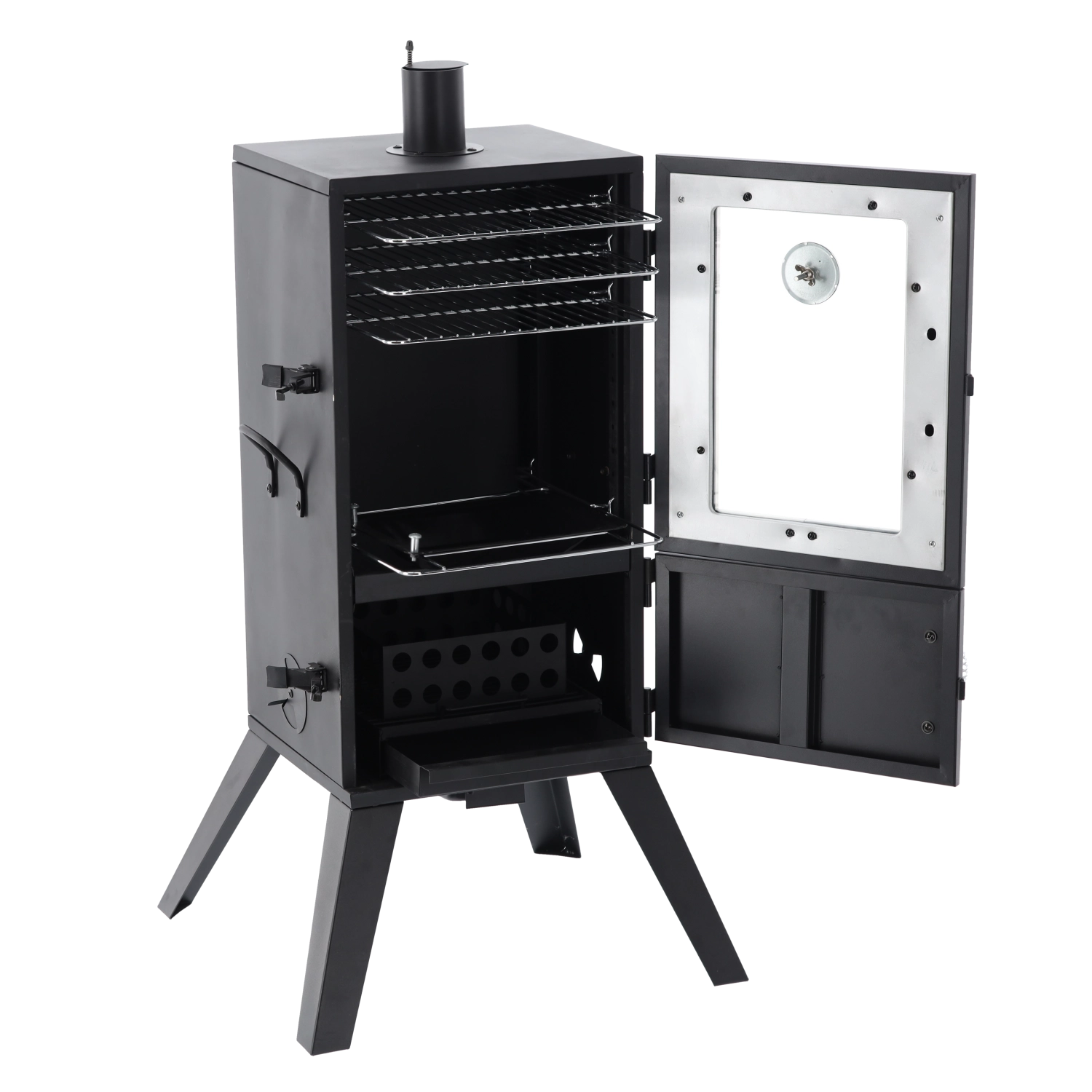 Wbudowany termometr w drzwiach oraz regulowany dopływ powietrza umożliwiają precyzyjne dostrajanie temperatury i ilości dymu dla doskonałych wyników wędzenia.