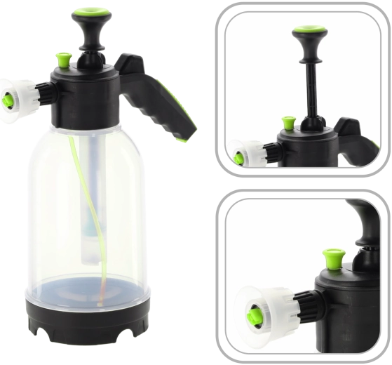 Profesjonalna ręczna pianownica o pojemności 2 litry do szybkiej i precyzyjnej aplikacji środków czyszczących. Dzięki solidnej konstrukcji, wysokiej odporności chemicznej i wysokiej jakości uszczelnieniom długotrwale utrzymuje ciśnienie, co zapewnia stały i równomierny wydatek piany. Dwie wymienne dysze – rozpylająca i pianotwórcza – pozwalają dopasować gęstość i rodzaj aplikacji do potrzeb w warsztacie, myjni, sprzątaniu i w domu.