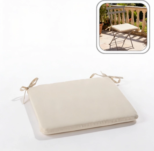 Elegancka beżowa poduszka na krzesło zachwyca uniwersalnym wyglądem i praktycznymi detalami. Miękkie włókno poliestrowe dba o wygodę podczas codziennego siedzenia, a wytrzymała poliestrowa poszewka z lekką ochroną przed kroplami lepiej radzi sobie z drobnymi wypadkami w kuchni i na zewnątrz.