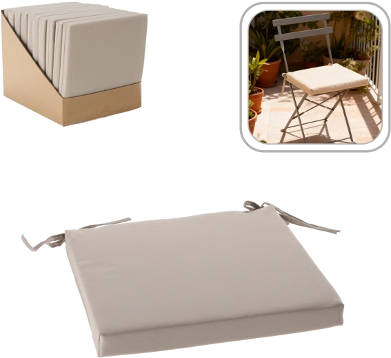 Eleganckie kwadratowe siedzisko o wymiarach 40 × 40 × 5 cm łączy wygodę z praktycznością. Neutralny, naturalny kolor pasuje do różnych typów krzeseł i gatunków drewna, dzięki czemu z łatwością odświeży każde wnętrze. Poszewka jest odporna na drobne krople i łatwa w utrzymaniu.