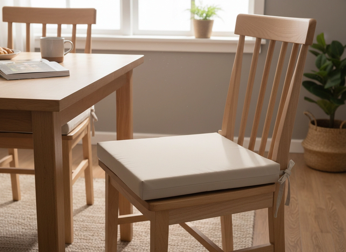 Grubość 5 cm i miękkie włókno poliestrowe zapewniają komfortowe wypełnienie do codziennego użytku przy stole jadalnianym i podczas pracy.