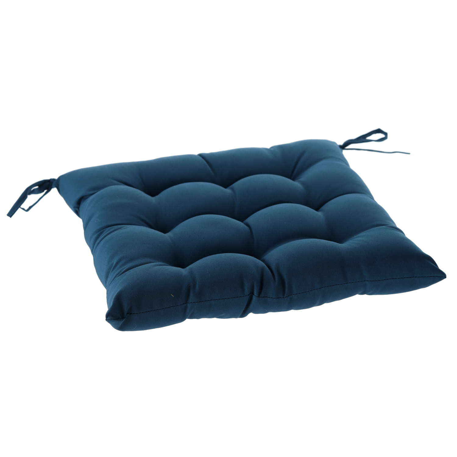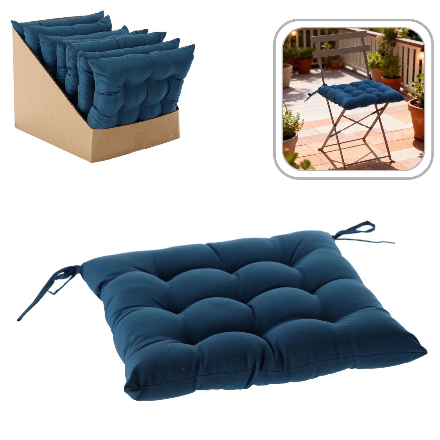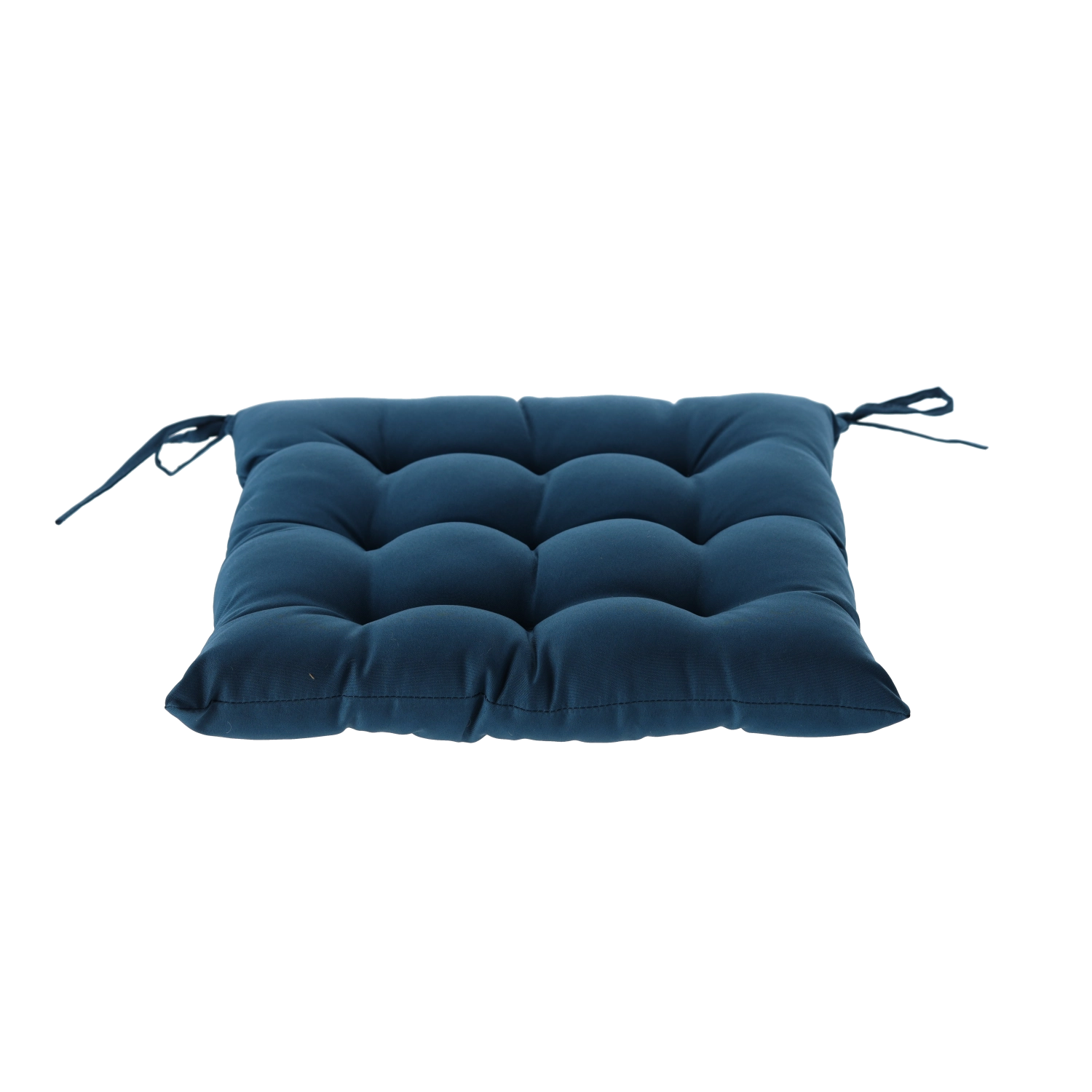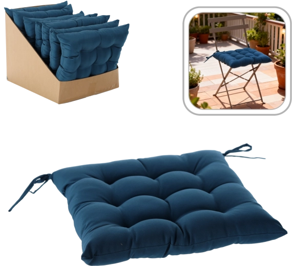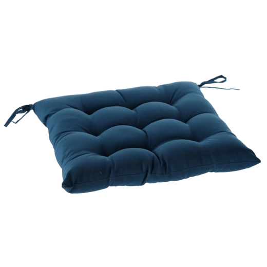 Stylowa niebieska poduszka na krzesło o wymiarach 40 × 40 × 6 cm doda Twojemu siedzeniu większego komfortu i świeżego wyglądu. Dzięki 9 punktom pikowania zachowuje kształt, jest przyjemnie miękka, a za pomocą sznureczków łatwo przymocujesz ją do krzesła w domu, na balkonie i na tarasie.