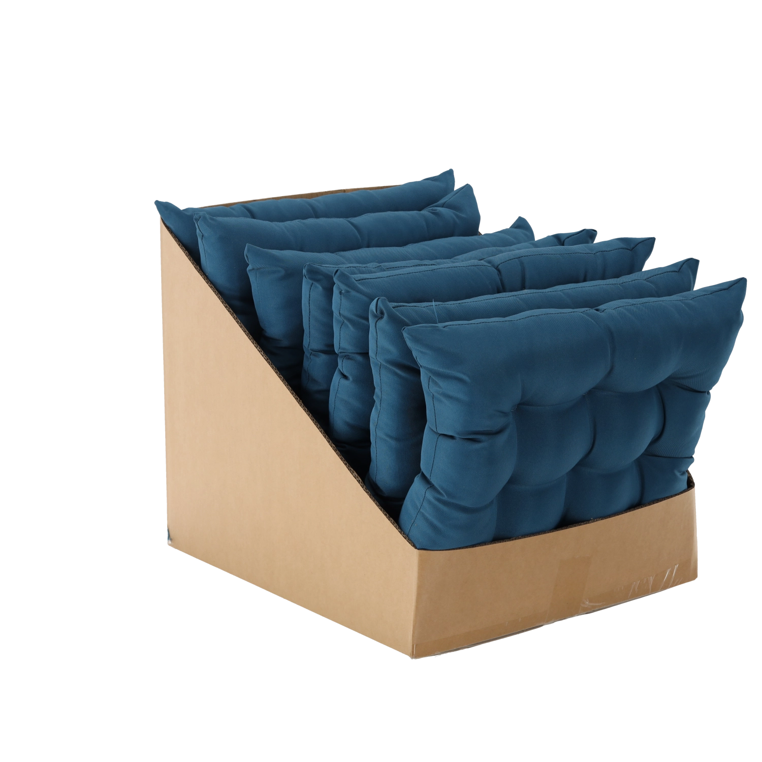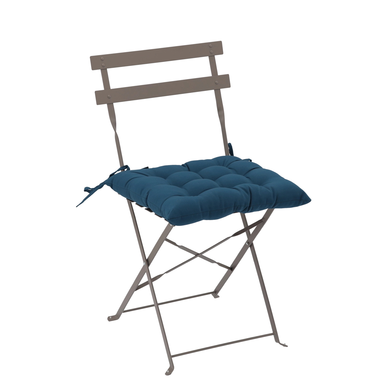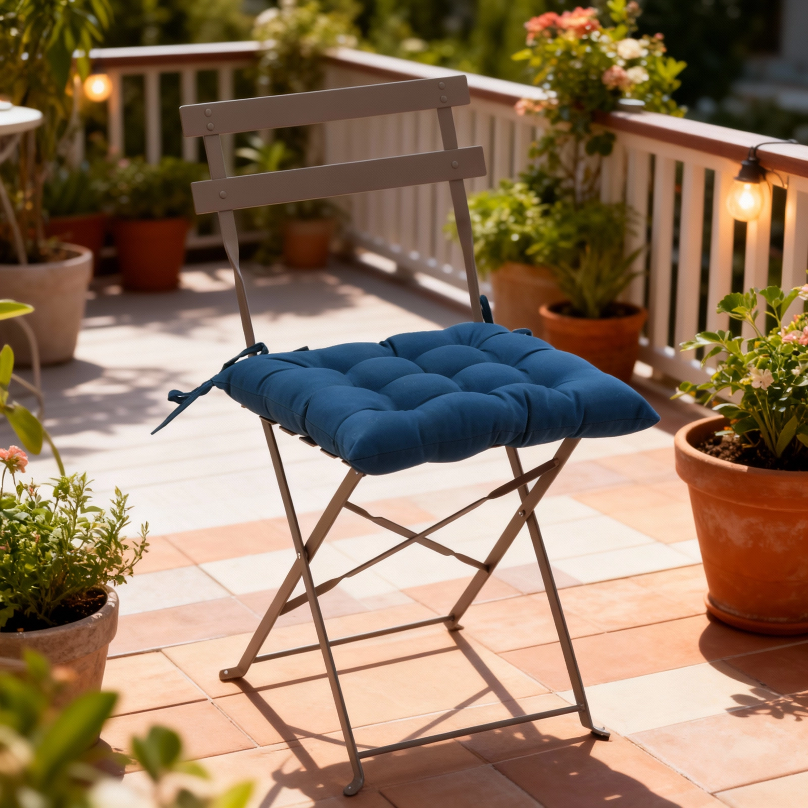 Stylowa niebieska poduszka na krzesło o wymiarach 40 × 40 × 6 cm doda Twojemu siedzeniu większego komfortu i świeżego wyglądu. Dzięki 9 punktom pikowania zachowuje kształt, jest przyjemnie miękka, a za pomocą sznureczków łatwo przymocujesz ją do krzesła w domu, na balkonie i na tarasie.