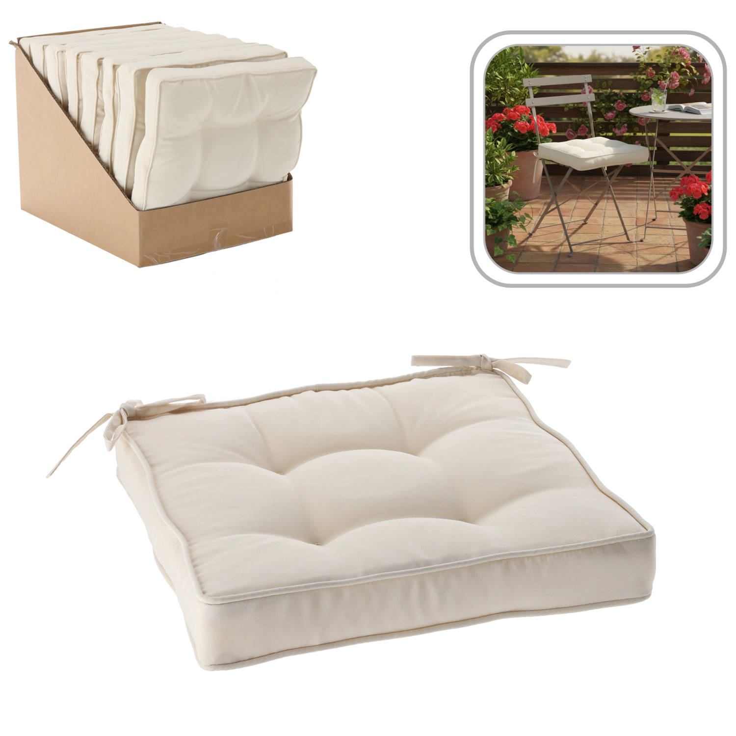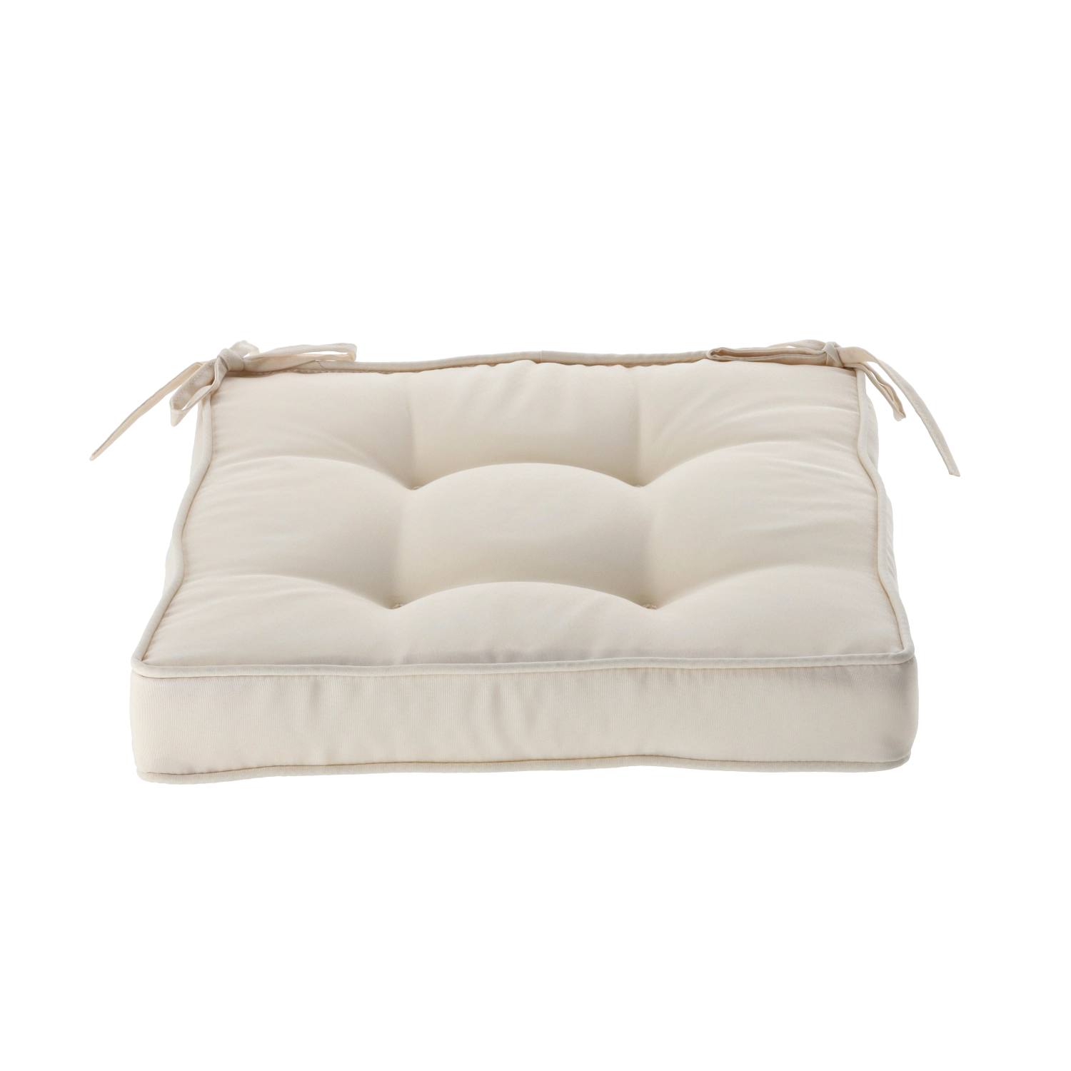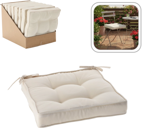 Beżowa, pikowana poduszka natychmiast odświeży wygląd krzesła i uprzyjemni każde siedzenie. Dzięki uniwersalnej barwie świetnie pasuje do większości wnętrz, a także na balkon czy taras. Cztery punkty pikowania pomagają utrzymać wypełnienie na miejscu i zapewniają elegancki wygląd bez odkształceń.