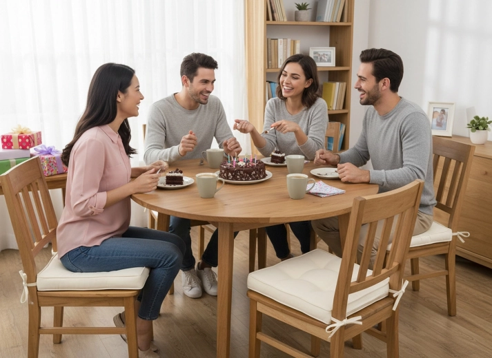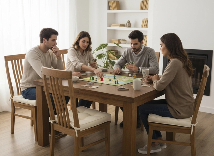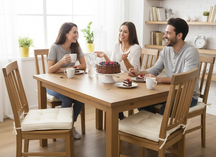 Grube, 6‑centymetrowe wypełnienie z włókna poliestrowego zapewnia miękkie, a jednocześnie stabilne siedzenie podczas posiłków, pracy i relaksu.