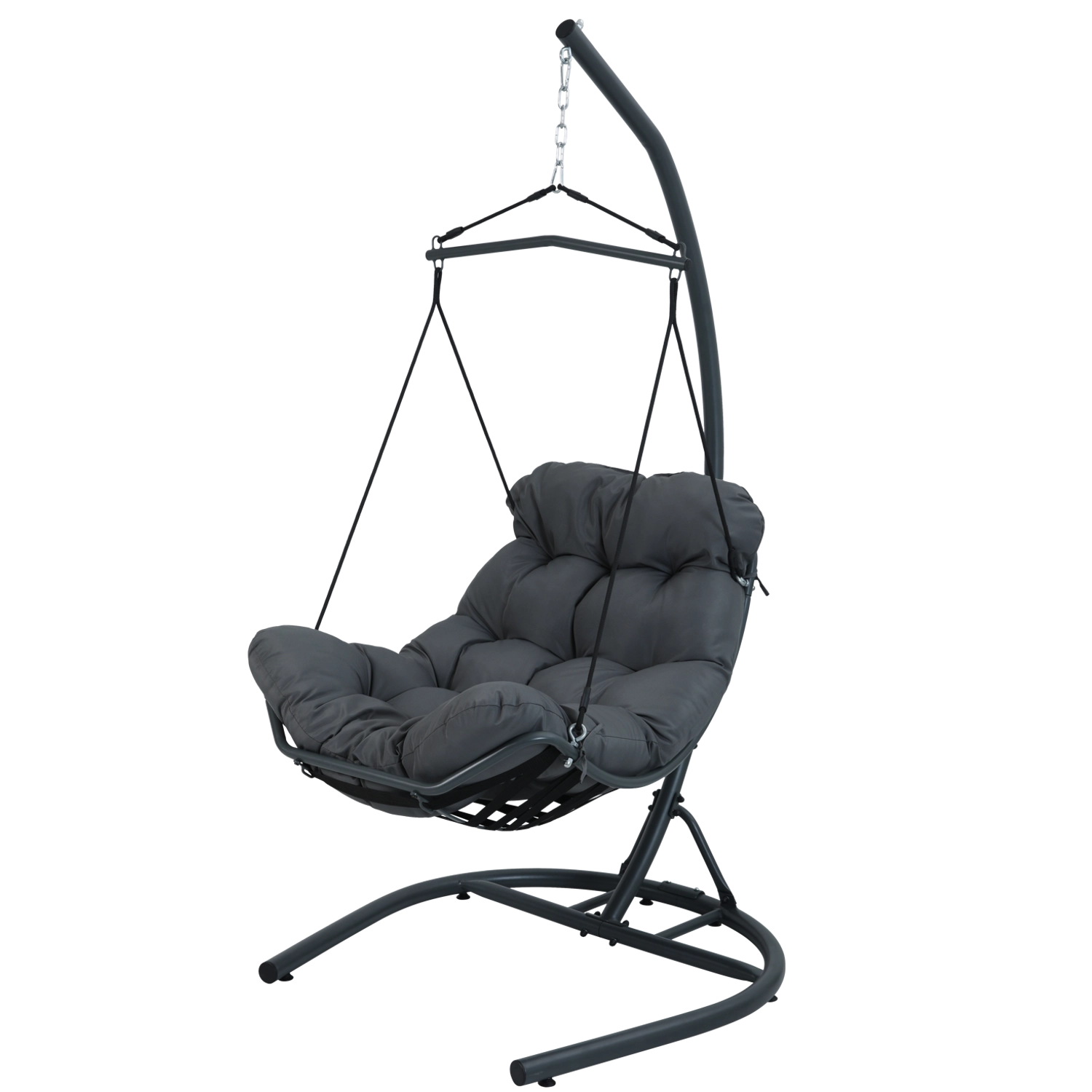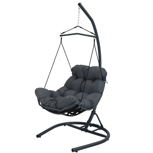Wiszący fotel Tumber – antracytowa konstrukcja i poduszka