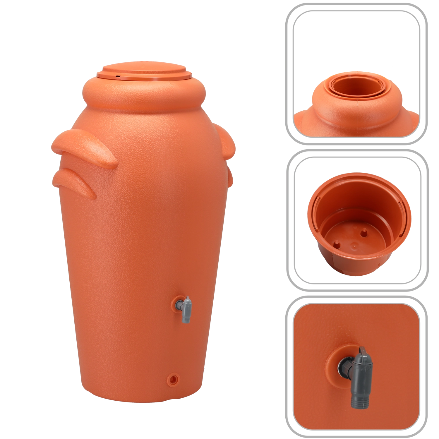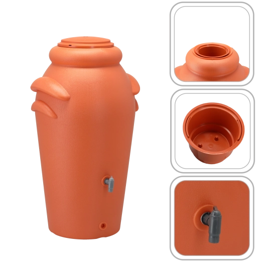 Stylowy zbiornik na deszczówkę o pojemności 200 litrów oszczędza wodę pitną i zapewnia wygodne podlewanie ogrodu. Wytrzymały plastik w ceglastym kolorze harmonizuje z otoczeniem, a kompaktowe wymiary umożliwiają łatwe ustawienie nawet w mniejszych przestrzeniach. Górny otwór z pokrywą gwarantuje łatwe napełnianie, a dolny gwint pozwala na szybkie podłączenie kranu lub węża.