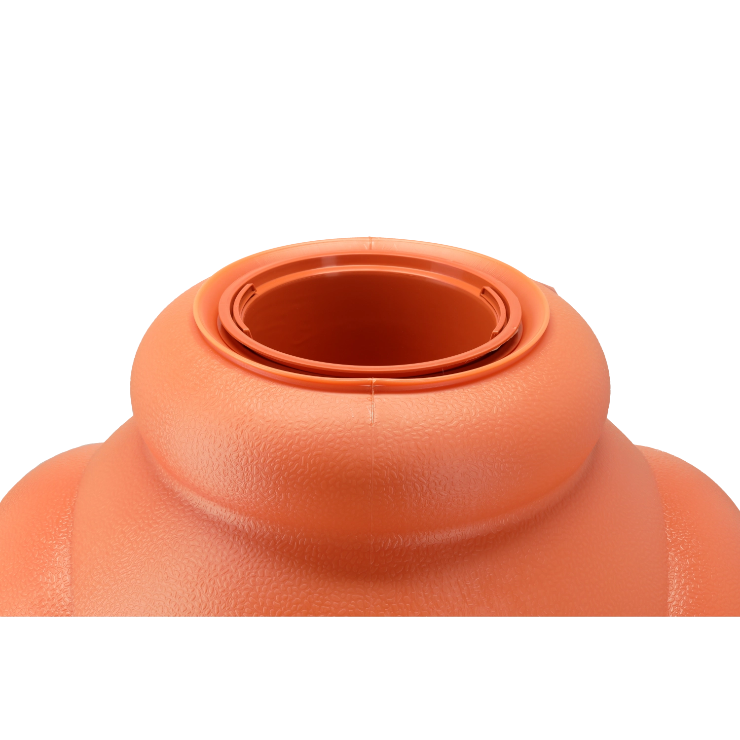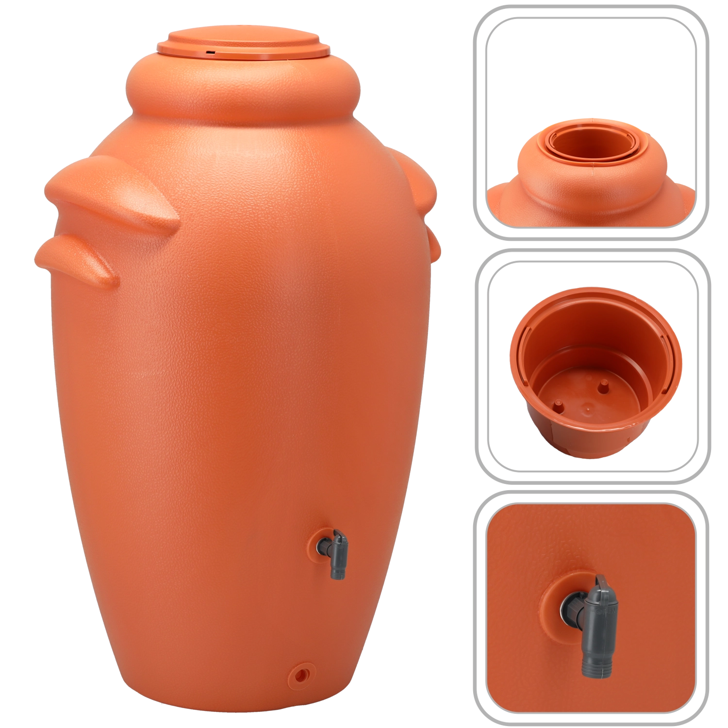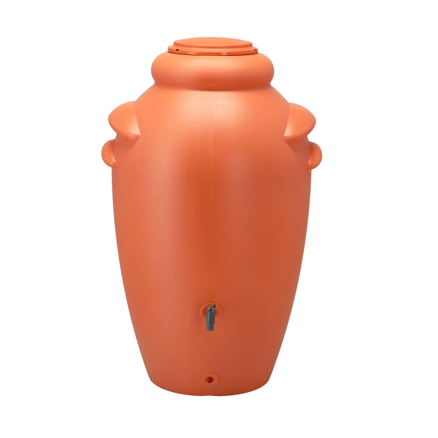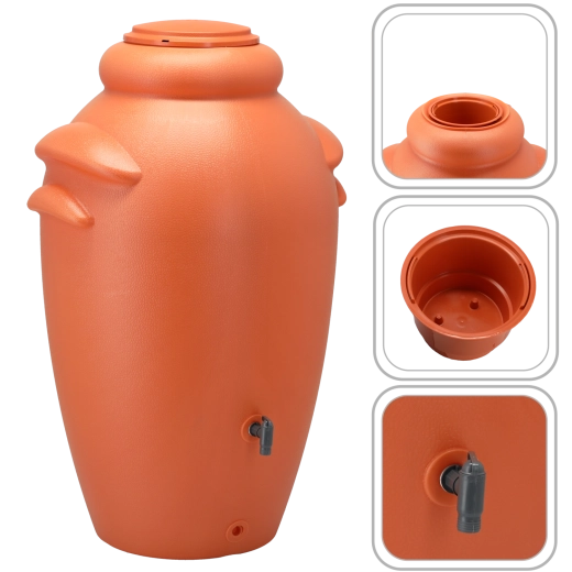 Teksturowana powierzchnia i kształt eleganckiej wazy zmieniają zbiornik w element wystroju ogrodu – jednocześnie funkcjonalny i estetyczny.