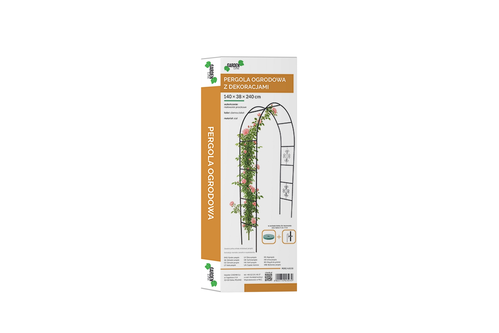 Elegancka ogrodowa pergola łączy funkcjonalność i styl na taras lub do ogrodu. Dzięki ozdobnym detalom podkreśla piękno pnączy i tworzy romantyczną atmosferę. Konstrukcja z wytrzymałej stali malowanej proszkowo radzi sobie z warunkami zewnętrznymi, a dołączone kotwy do mocowania w gruncie zapewniają stabilność.