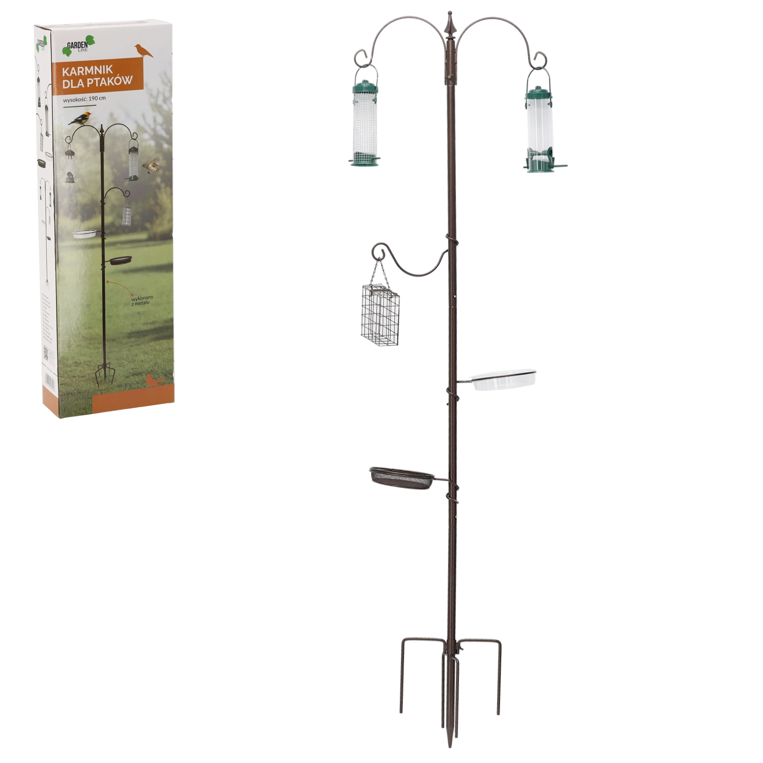 Wielofunkcyjny design jest przygotowany na ziarna, nasiona słonecznika, orzechy oraz bloki tłuszczowe, a także posiada miejsce na wodę. W zestawie znajdują się kotwy do mocowania w gruncie, które znacząco zwiększają stabilność nawet przy wietrze. Montaż jest szybki i intuicyjny, a demontaż ułatwia przechowywanie poza sezonem.