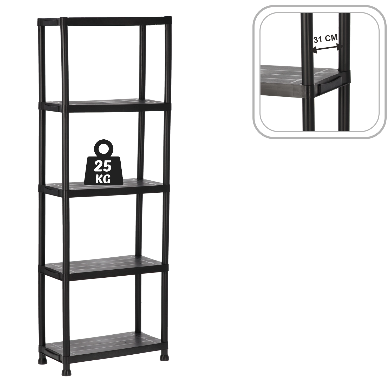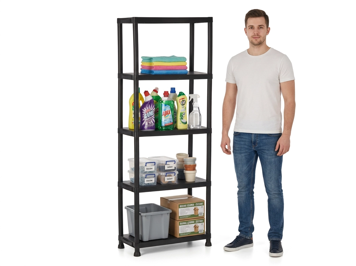 Praktyczny i wytrzymały plastowy regał z 5 półkami oferuje oszczędne pionowe przechowywanie do warsztatu, garażu, piwnicy i spiżarni. Każda półka utrzymuje do 25 kg, a otwarta konstrukcja zapewnia łatwy dostęp i dobrą wentylację. Dzięki lekkiej, ale stabilnej budowie regał szybko się montuje, jest łatwy w utrzymaniu i pomaga utrzymać porządek w każdej przestrzeni.