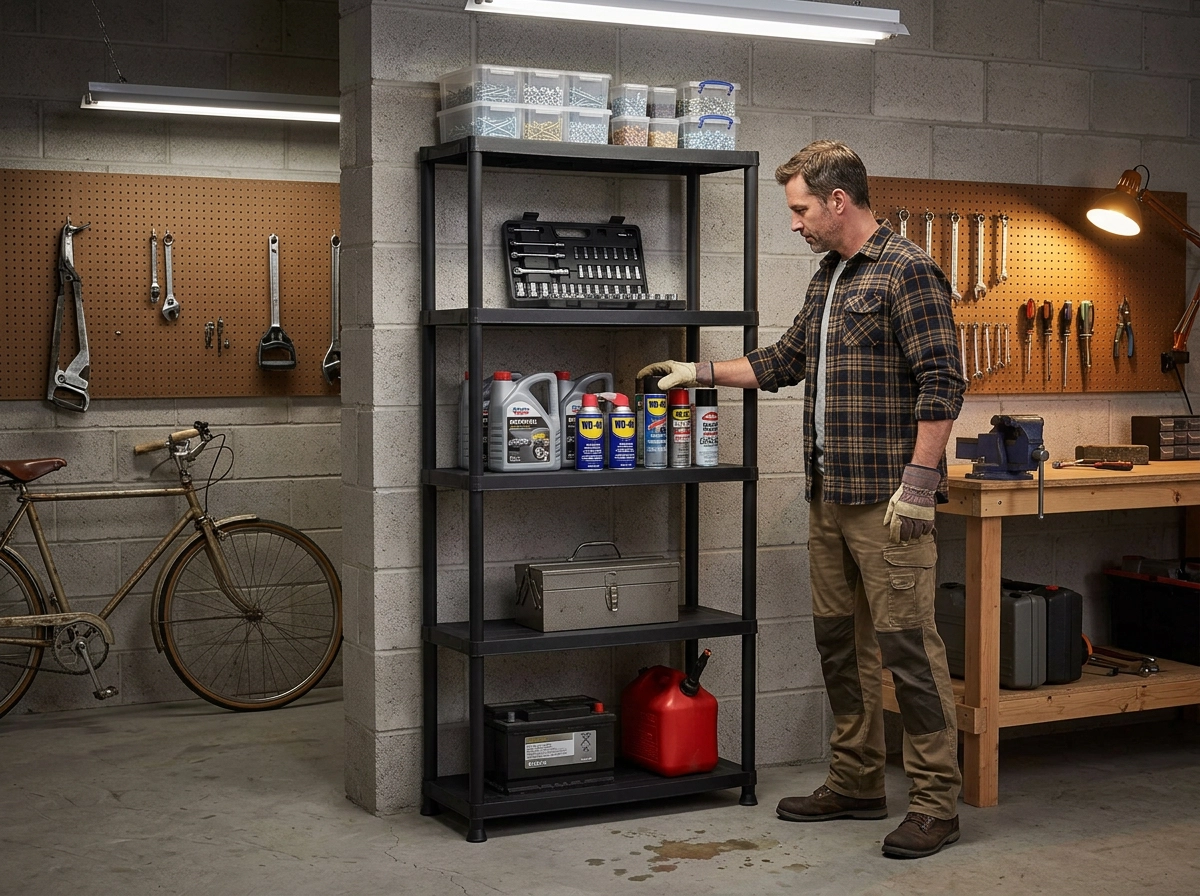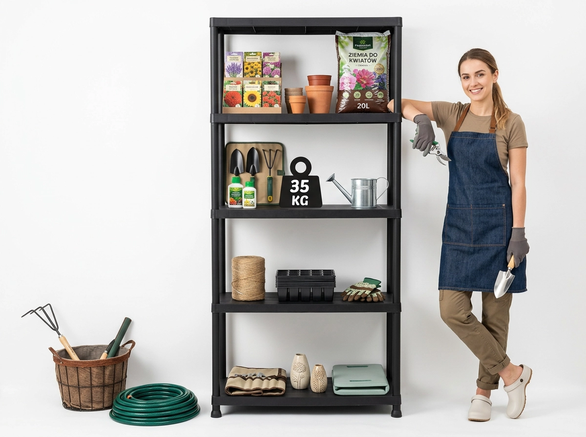 Wytrzymały plastik jest odporny na wilgoć i warunki atmosferyczne, dlatego sprawdzi się w garażu, piwnicy oraz zadaszonych przestrzeniach zewnętrznych.