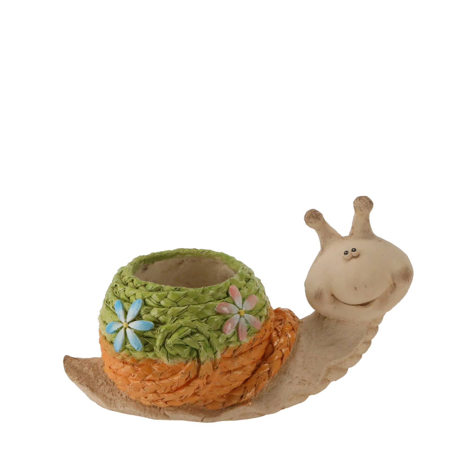 Oryginalna donica w kształcie ślimaka nada Twojemu ogrodowi, tarasowi i balkonowi wyjątkowy urok. Dzięki ręcznemu wykonaniu każdy egzemplarz jest niepowtarzalny, a trwała polirezyna zapewnia długą żywotność i wszechstronne zastosowanie wewnątrz i na zewnątrz. Elegancka powierzchnia w odcieniach kamienia łatwo łączy się z różnymi aranżacjami i podkreśla piękno Twoich roślin.