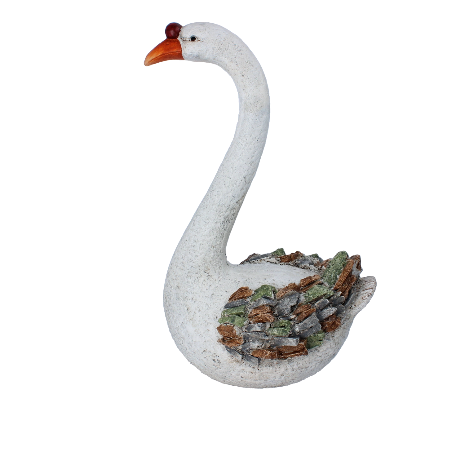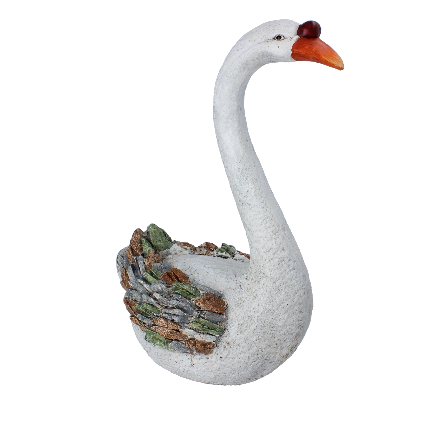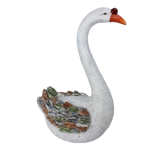 Delikatne linie szyi, kształt dzioba i struktura powierzchni nadają figurce autentyczny wygląd, który doskonale wpisuje się w naturalne otoczenie.