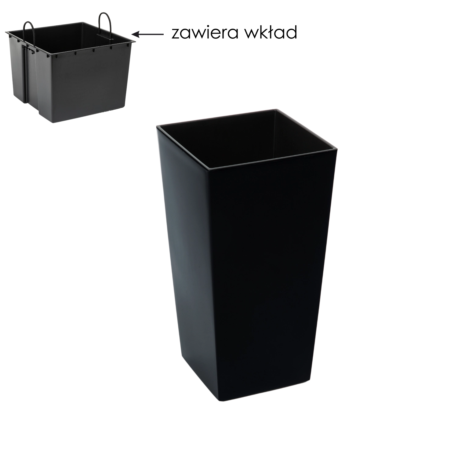 Elegancka czarna donica Finezja o wymiarach 19 × 19 × 36 cm łączy nowoczesny wygląd z praktycznymi funkcjami. Wykonana z wysokiej jakości tworzywa odpornego na mróz i promieniowanie UV, dzięki czemu na długo zachowuje kolor i kształt. W zestawie znajduje się wyjmowany wkład ułatwiający sadzenie oraz sprytna regulacja wody, która utrzymuje korzenie w optymalnej wilgotności. Idealna do użytku wewnątrz i na zewnątrz, z błyszczącą, gładką powierzchnią przypominającą ceramikę oraz niską wagą dla łatwej obsługi.