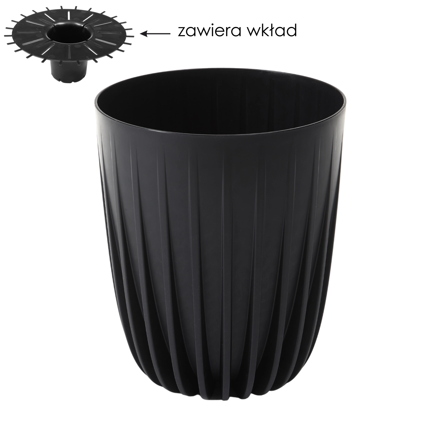 Doniczka MIRA 25 cm ECO Recycled w czarnym kolorze łączy styl i zrównoważony rozwój. Wykonana z plastiku z recyklingu, zapewnia wytrzymałość, niską wagę i ponadczasowy wygląd z atrakcyjnym wzorem 3D, który świetnie pasuje zarówno do nowoczesnych, jak i klasycznych wnętrz oraz przestrzeni zewnętrznych.