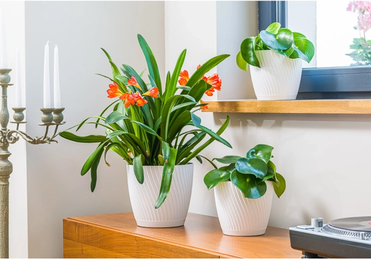 Dodaj swoim roślinom styl i niezawodną opiekę. Doniczka z podstawką Mika Eco Recycled wyróżnia się czystą bielą i falującą strukturą, która świetnie sprawdzi się w salonie, na balkonie i w ogrodzie. Wytrzymały, recyklingowany plastik zapewnia niską wagę, długą żywotność i łatwe czyszczenie.