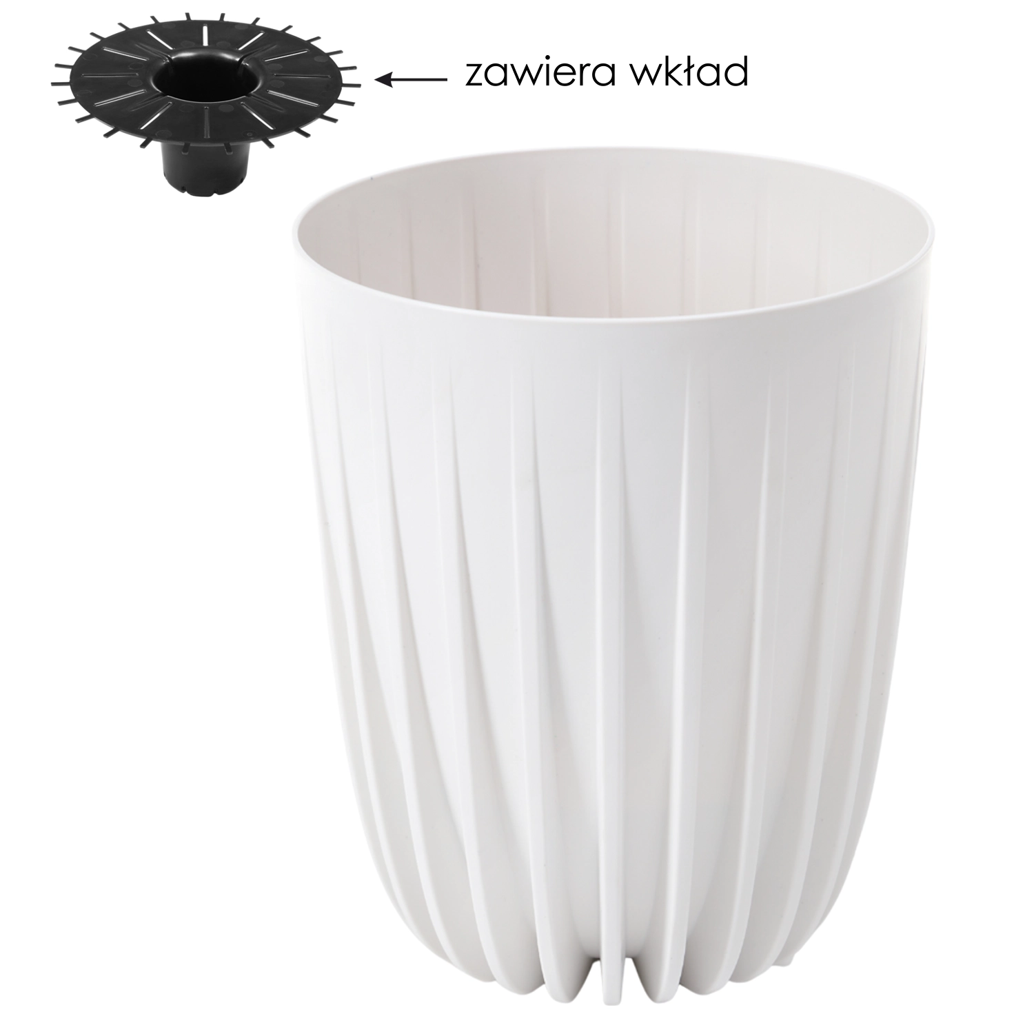 - Wyjmowany wkład – wygodne sadzenie i lepsze gospodarowanie wodą.