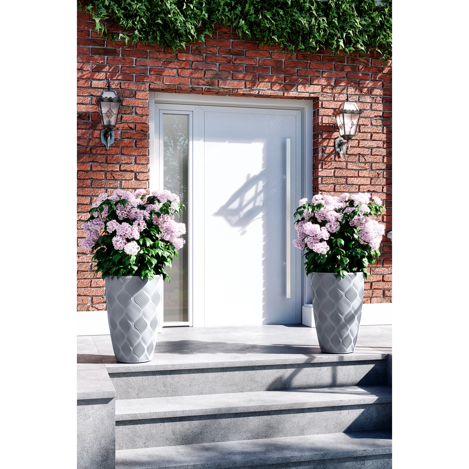 Donica FLOW Slim w nowoczesnym, platynowym kolorze łączy elegancki wygląd z funkcjonalnością. Unikalna ryflowana powierzchnia 3D nadaje designerskiego charakteru, który pasuje do nowoczesnych i klasycznych przestrzeni, na tarasy, balkony oraz do salonów. Matowa powierzchnia jest łatwa w utrzymaniu i odporna na zarysowania.