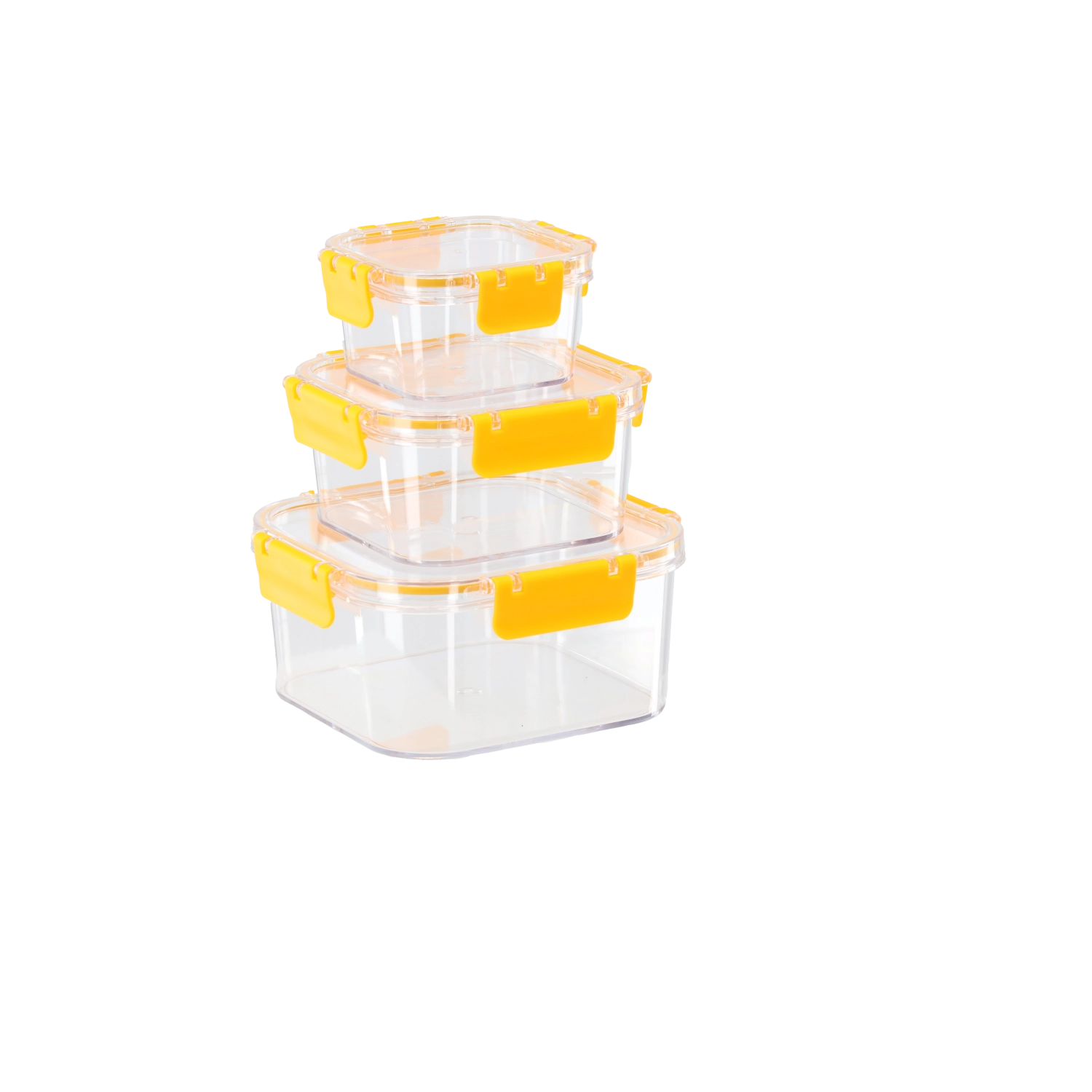 Utrzymaj porządek w kuchni z zestawem trzech wzajemnie sztaplowanych kwadratowych pojemników. Różne pojemności 0,4 l, 0,9 l i 1,8 l obejmują wszystko od przekąsek i resztek po większe porcje. Przezroczyste ścianki umożliwiają natychmiastową kontrolę zawartości bez otwierania, a uszczelniane pokrywki z klipsami chronią przed ulatnianiem zapachów i wysychaniem.