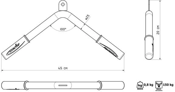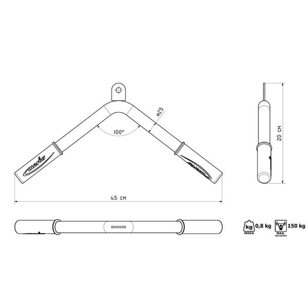 Podnieś swój trening ramion na wyższy poziom z adapterem tricepsowym MARBO. Wytrzymała konstrukcja o profilu 40 × 40 mm i praktyczna długość 45 cm gwarantują stabilność oraz komfort precyzyjnego wykonywania ćwiczeń. Dzięki średnicy chwytu 25 mm adapter świetnie leży w dłoni i ogranicza poślizg.