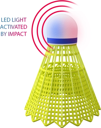 Zintegrowany moduł LED w podstawie lotki zapewnia świetną widoczność podczas wieczornej gry. Zasilanie baterią guzikową wydłuża czas świecenia i zabawy.