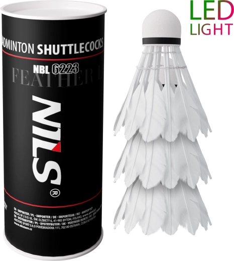 Lotki do badmintona Nils NBL6223 łączą tradycyjny koszyczek z kaczych piór z nowoczesną technologią LED. Dzięki aerodynamicznym właściwościom piór lotki są szybsze, a gra bardziej dynamiczna. Precyzyjnie wyważona podstawa z materiału EVA zapewnia stabilną trajektorię i pewne umieszczanie uderzeń.
