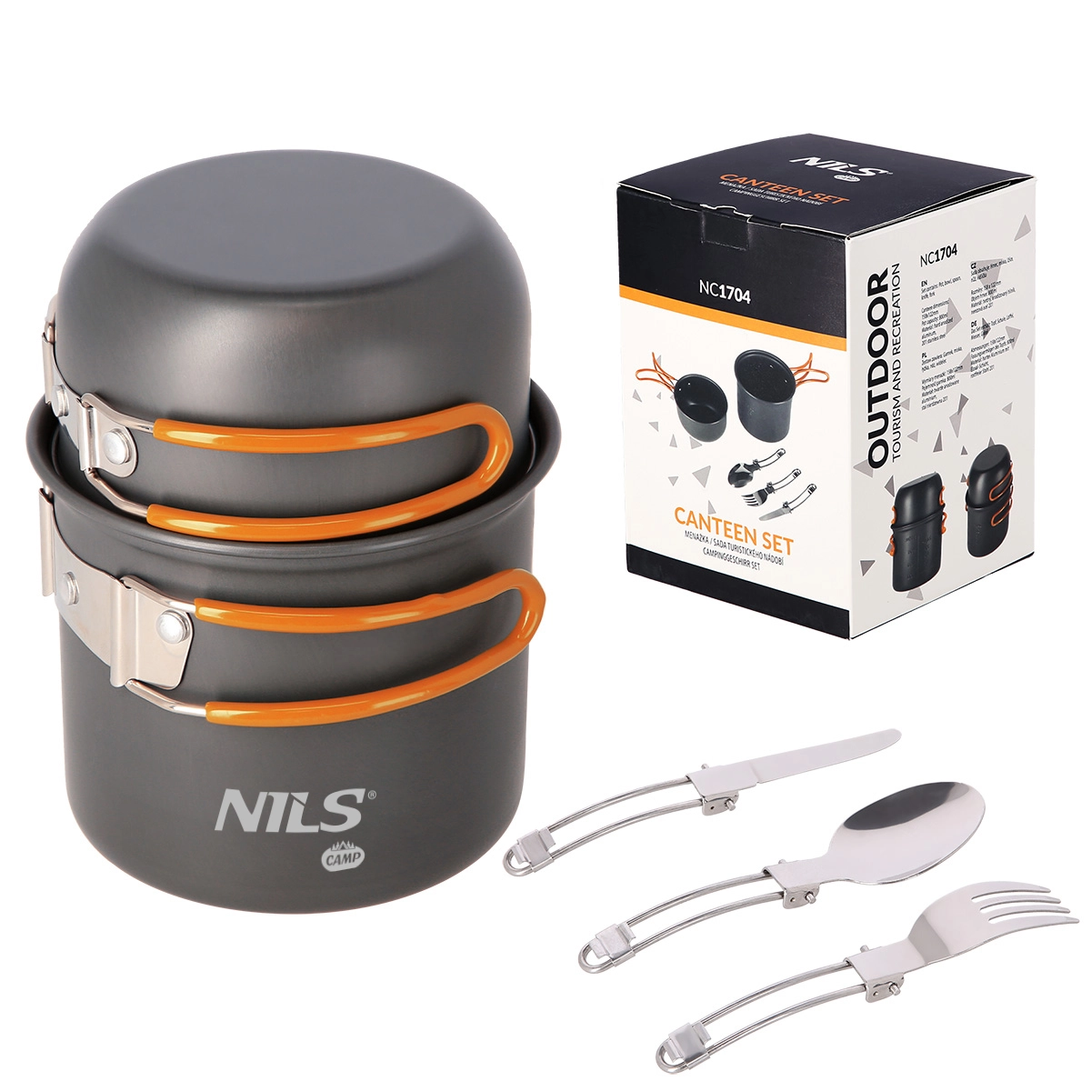 NILS Camp oferuje praktyczny zestaw naczyń do turystyki, biwakowania i spływów. Garnek i rondelek/patelka z anodyzowanego aluminium są odporne na korozję i niesprzyjające warunki, a składane stalowe uchwyty z gumową powłoką zwiększają bezpieczeństwo chwytu. Dzięki możliwości sztaplowania oraz dołączonemu woreczkowi z siatki zestaw łatwo spakować i zajmuje minimalną ilość miejsca.