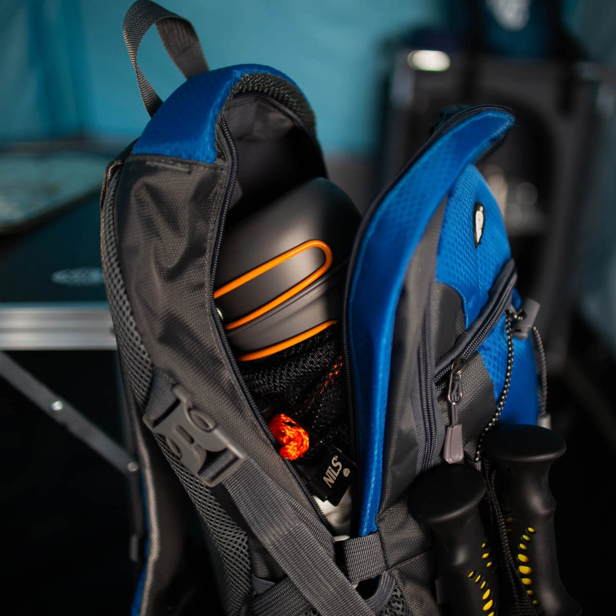 Składane uchwyty i wzajemnie wsuwane naczynia oszczędzają miejsce. Zestaw mieści się nawet w mniejszym plecaku i jest gotowy do szybkiego użycia na kempingu lub w namiocie.