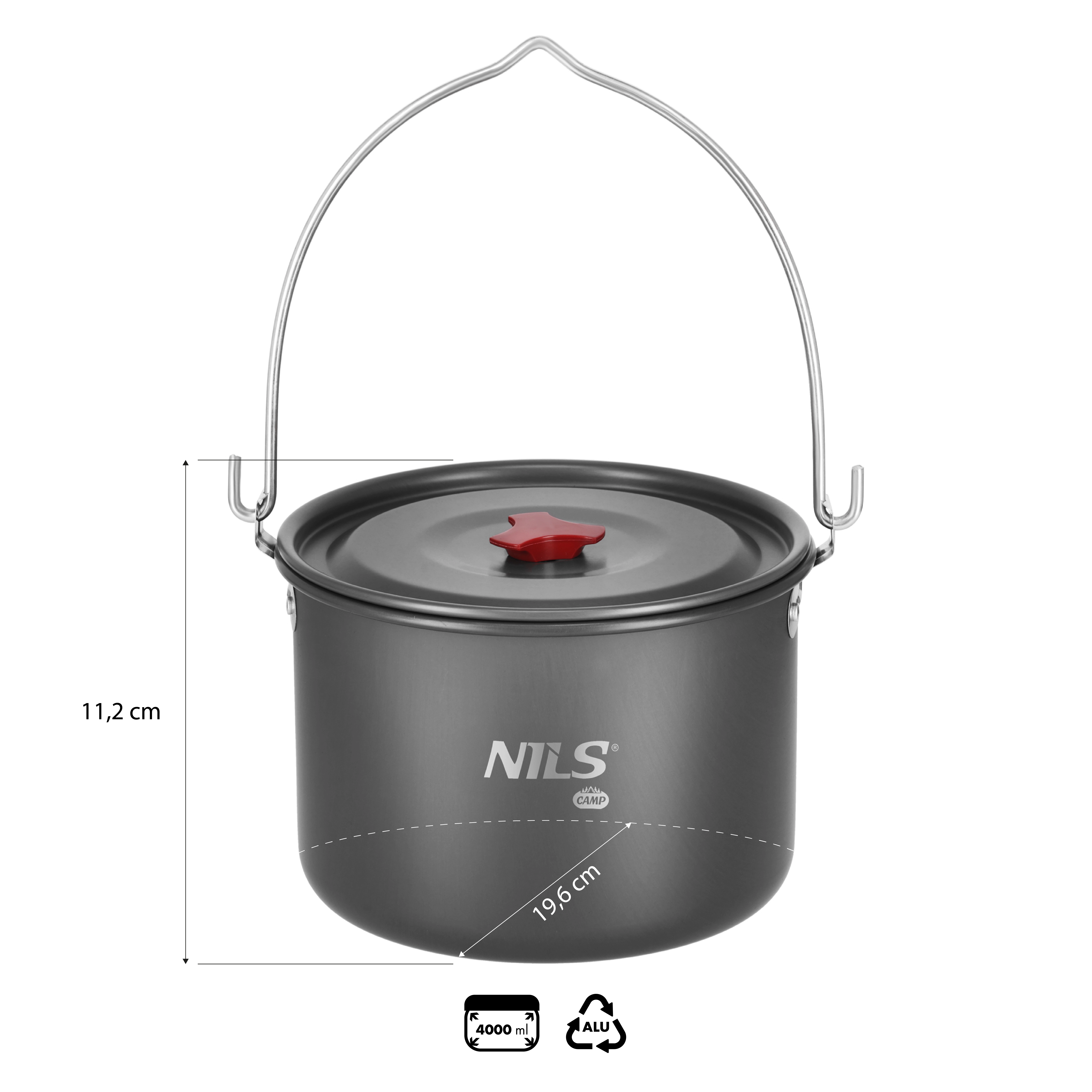 Garnek kempingowy NILS CAMP zaprojektowano do niezawodnego gotowania w podróży – od kuchenki turystycznej po zawieszenie nad otwartym ogniem. Aluminiowy korpus efektywnie rozprowadza ciepło, stalowe ucho zapewnia stabilne i bezpieczne przenoszenie, a pokrywka z wytrzymałym gałkiem z ABS ułatwia obsługę nawet w wyższych temperaturach.