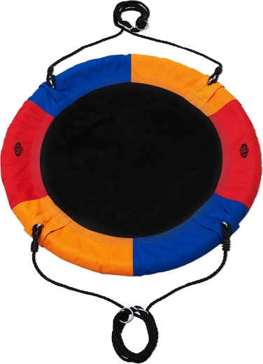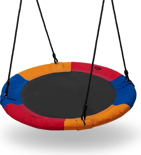 Cztery liny zawieszenia z PE o długości 180 cm rozkładają obciążenie na kilka punktów, dzięki czemu huśtawka jest stabilna i wygodna. Kolorowa lamówka w barwach niebieskiej, czerwonej i pomarańczowej nada Twojemu ogrodowi radosny wygląd, a jednocześnie amortyzuje uderzenia podczas zabawy.