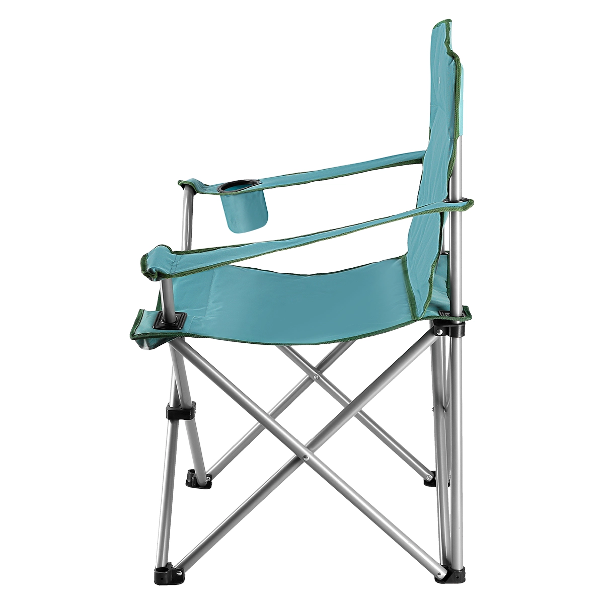 Wytrzymałe i wygodne składane krzesło kempingowe na ryby, nad wodę i na festiwal. Oferuje stabilną stalową konstrukcję, poszycie Oxford 600D, regulowane podłokietniki oraz uchwyt na napój. Łatwo składa się do przenośnego pokrowca z paskiem i wytrzymuje do 130 kg.