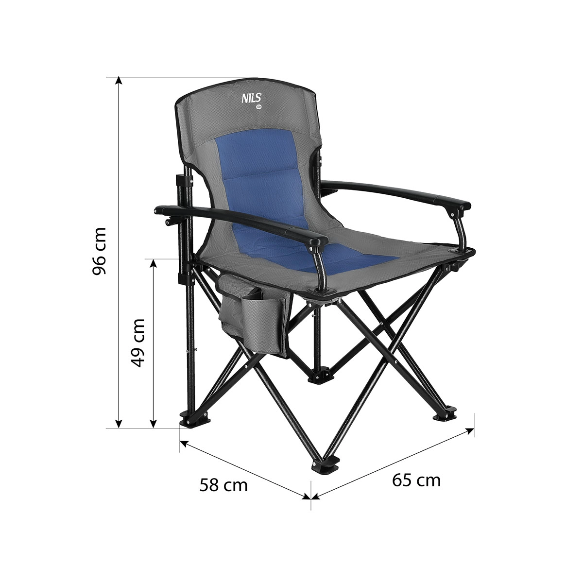 Ciesz się wygodą gdziekolwiek dzięki wytrzymałemu i tapicerowanemu składanemu krzesłu kempingowemu NILS Camp. Oferuje solidną stalową konstrukcję, pełnowymiarowe podłokietniki, praktyczne kieszenie, w tym uchwyt na napoje, oraz udźwig 120 kg. Dzięki przenośnej torbie z paskiem łatwo je spakujesz i zabierzesz na ryby, nad wodę, na festiwal czy na kemping.