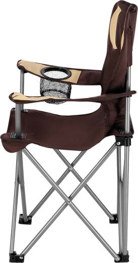 Komfort podnoszą regulowane podłokietniki oraz praktyczny koszyk na napój umieszczony na prawym podłokietniku. Krzesło łatwo złożysz do kompaktowych rozmiarów i schowasz do dołączonego pokrowca z paskiem na ramię – idealne do szybkiego przenoszenia i przechowywania.