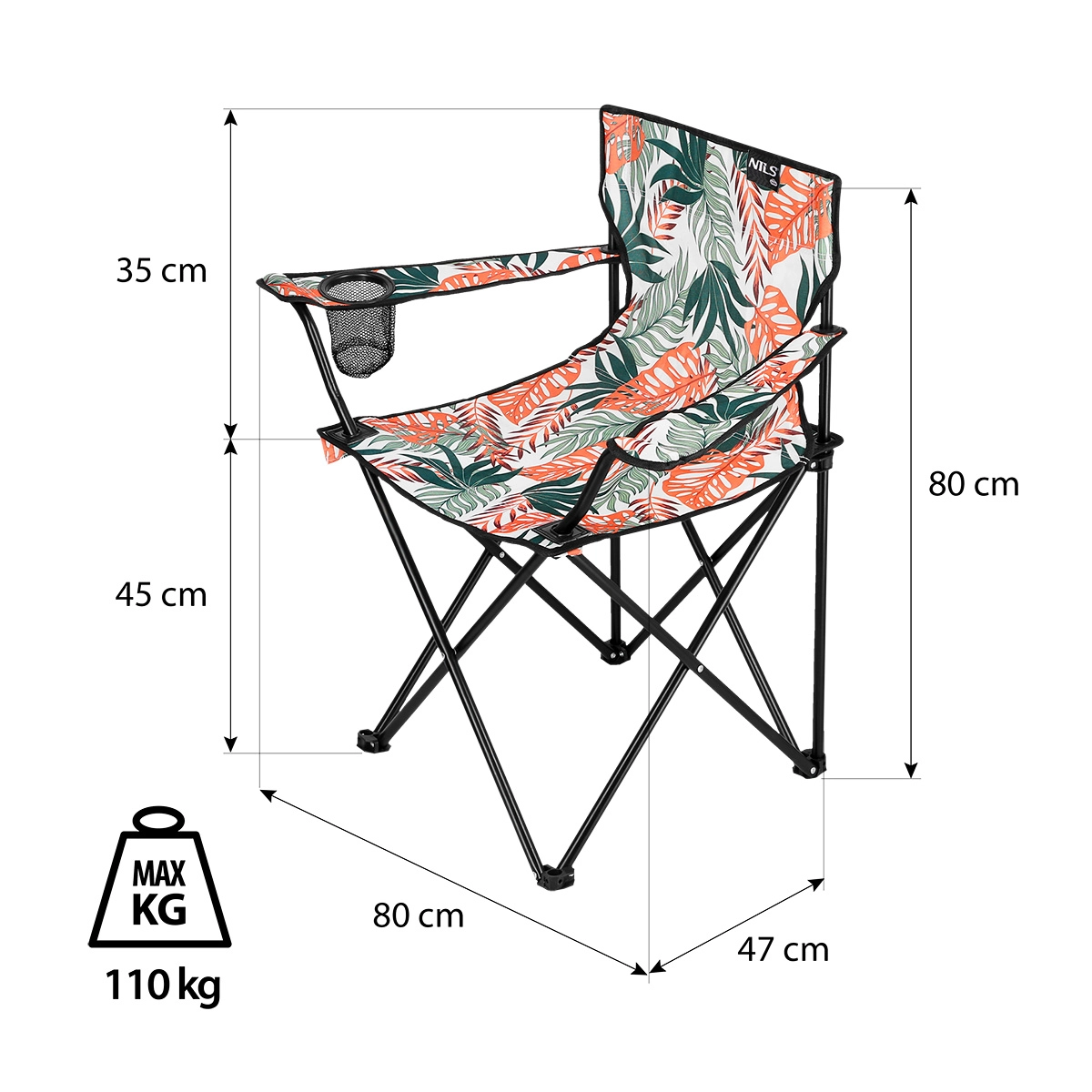 To składane krzesło kempingowe NILS Camp łączy wygodę, wytrzymałość i styl. Solidna rama z rur stalowych o średnicy 16 mm jest łączona wysokiej jakości nitami, co zapewnia długą żywotność i wysoką stabilność. Siedzisko i oparcie z poliestru 600D są odporne na ścieranie i warunki atmosferyczne, a plastikowe wzmocnienia w newralgicznych miejscach zwiększają ogólną trwałość.