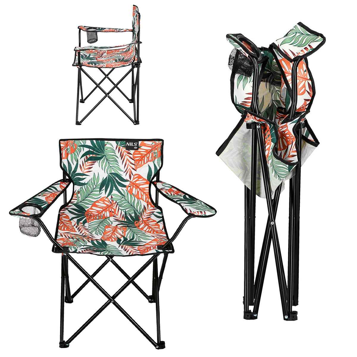 Lekkie i stabilne składane krzesło z tropikalnym nadrukiem jest idealne nad wodę, na ryby i na festiwal. Oferuje wytrzymałą stalową konstrukcję, mocną tkaninę 600D, regulowane podłokietniki oraz praktyczny uchwyt na napój. Dzięki łatwemu składaniu i niskiej wadze wygodnie zabierzesz je wszędzie.