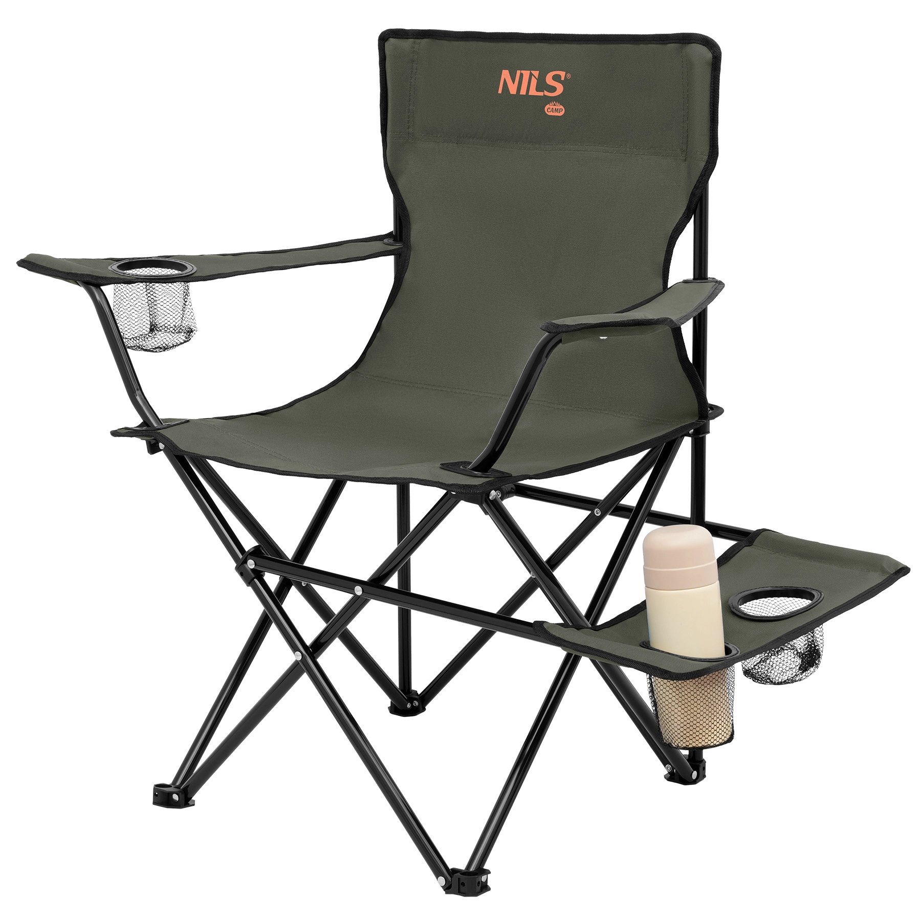 Składane krzesło kempingowe z bocznym stolikiem i uchwytami na napoje NILS Camp