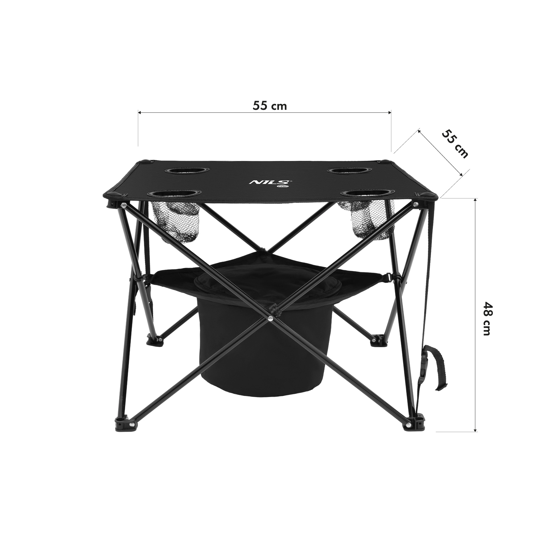 Praktyczny zestaw kempingowy NILS Camp oferuje składany stół i dwa wygodne krzesła do relaksu podczas wycieczek, pikników i nad wodą. Pod blatem stołu zintegrowano torbę chłodzącą na napoje i przekąski, a na blacie znajdują się cztery uchwyty na kubki lub butelki. Dzięki solidnej stalowej konstrukcji, wytrzymałym materiałom oraz kompaktowym wymiarom po złożeniu, zestaw jest stabilny, łatwy w przenoszeniu i idealny do biwakowania.