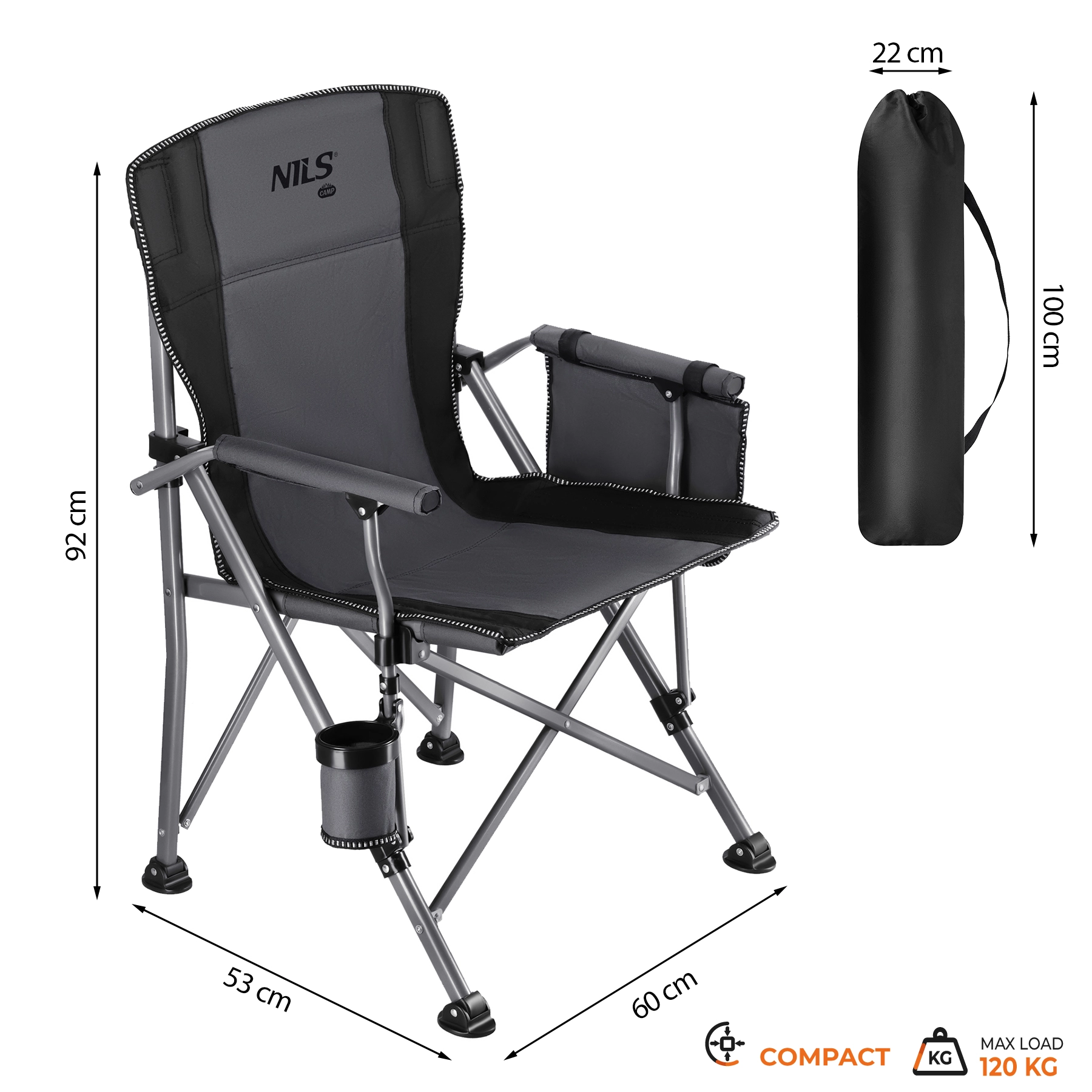 Ciesz się komfortem gdziekolwiek w plenerze. Składane krzesło kempingowe NILS Camp łączy wytrzymały poliester 600D Oxford z powłoką oraz stabilną stalową konstrukcję z lakierem proszkowym dla długiej żywotności. Dzięki niskiej masie i kompaktowym wymiarom po złożeniu łatwo je zabierzesz nad wodę, na biwak i do ogrodu.