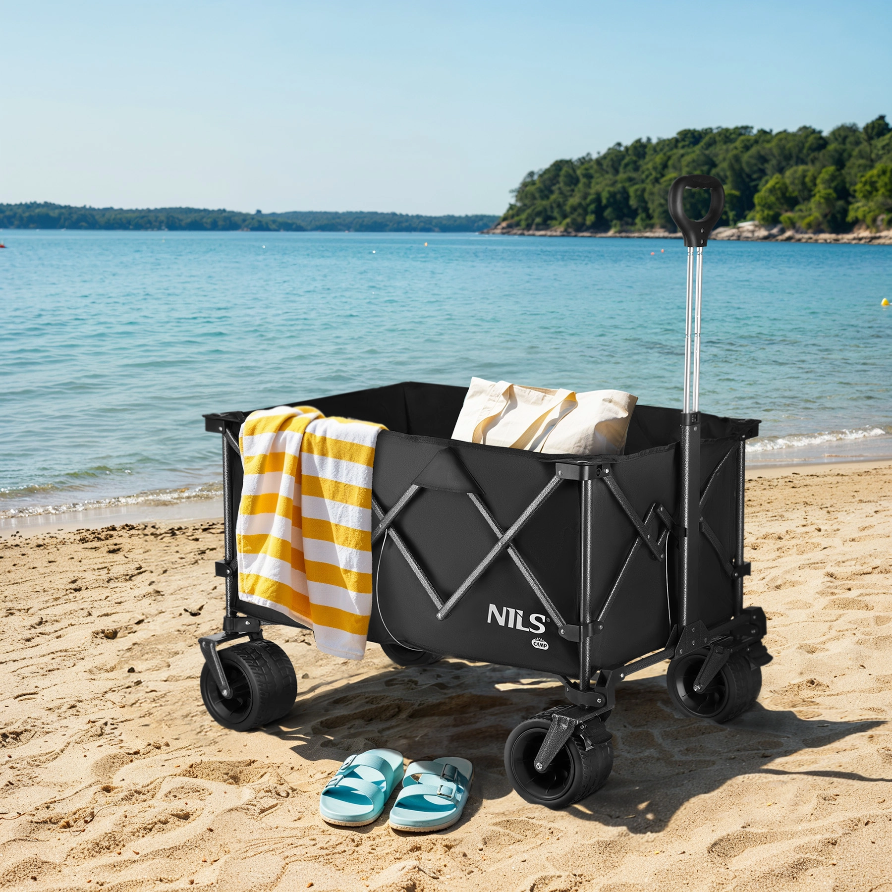Wózek NILS Camp został zaprojektowany do łatwego przewożenia wszystkiego, czego potrzebujesz – od sprzętu kempingowego, przez zakupy, po narzędzia ogrodowe. Stalowa rama z powłoką proszkową zapewnia wysoką odporność i długą żywotność, a skrzynia z materiału 600D Oxford jest odporna na ścieranie, wilgoć i trudniejsze warunki na zewnątrz.