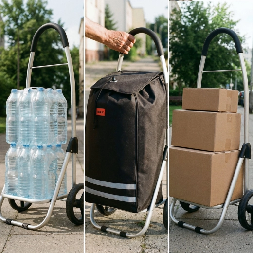 Składana konstrukcja umożliwia szybkie złożenie do kompaktowych rozmiarów, dzięki czemu wózek łatwo schować do bagażnika, szafy lub schowka. Jeśli szukasz połączenia pojemności 45 l, ładowności 30 kg i łatwego przechowywania, ten model to świetny wybór.