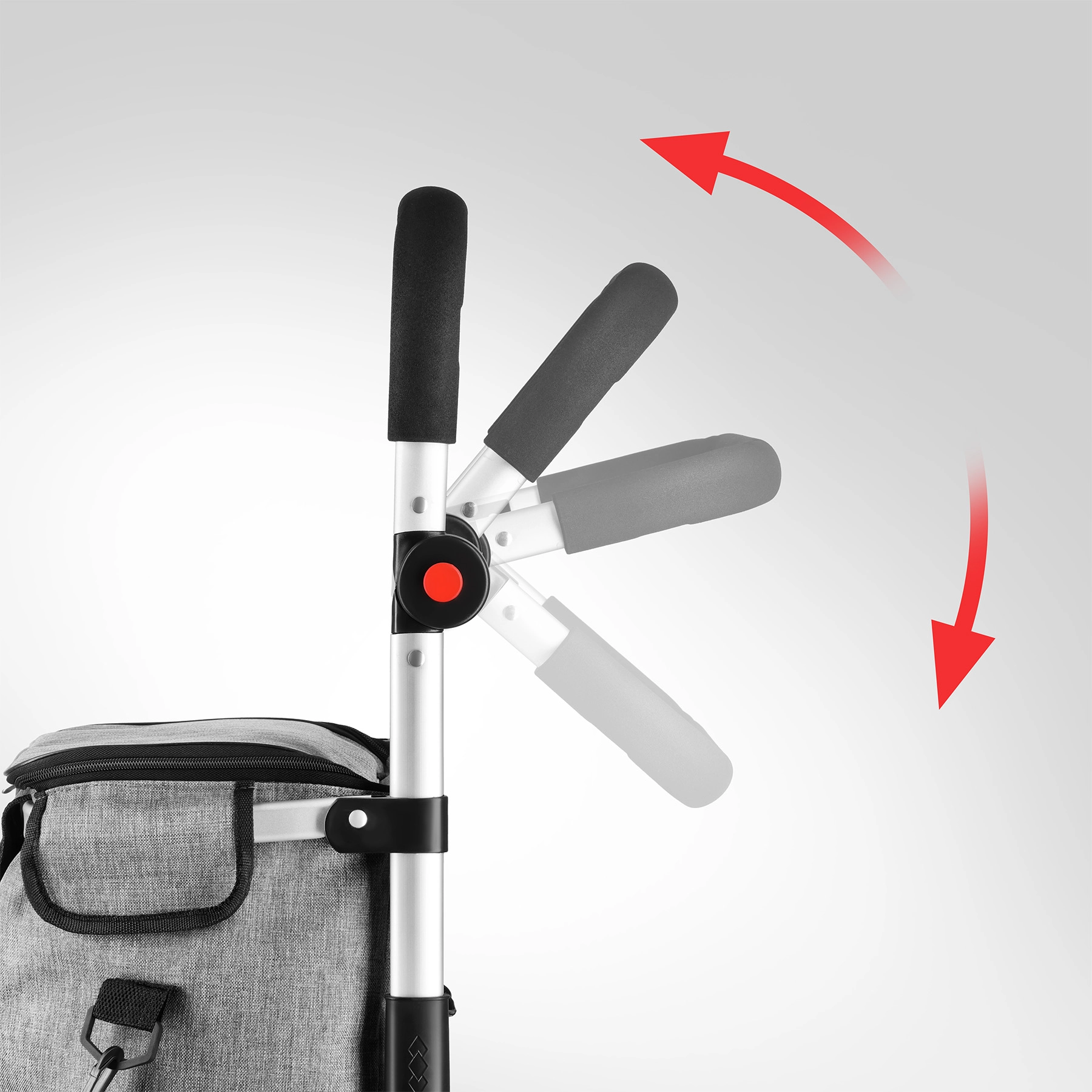 Koła o średnicy 21 cm i szerokości 4,3 cm z łatwością pokonują kostkę i krawężniki. Teleskopowa rączka z piankowym uchwytem jest regulowana w 3 pozycjach.