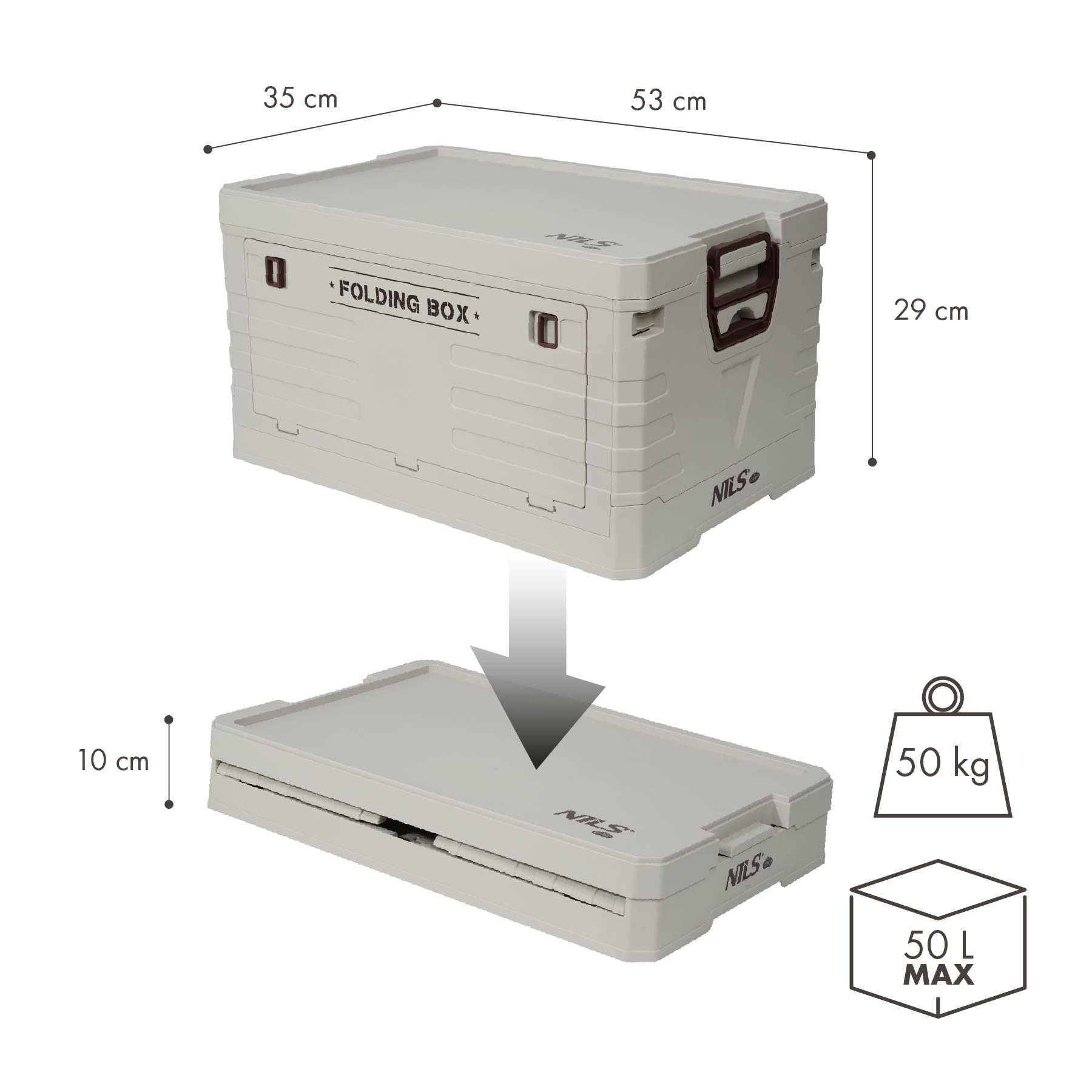 Składany pojemnik z pokrywą NILS Camp jest idealny do auta, na kemping, do warsztatu i domu. Oferuje dużą pojemność 50 l, wytrzymałe wykonanie z PP oraz szybkie złożenie do wysokości zaledwie 10 cm, co oszczędza miejsce. Dzięki zatrzaskowej pokrywie i bocznym uchwytom zawartość jest bezpieczna, a przenoszenie wygodne.